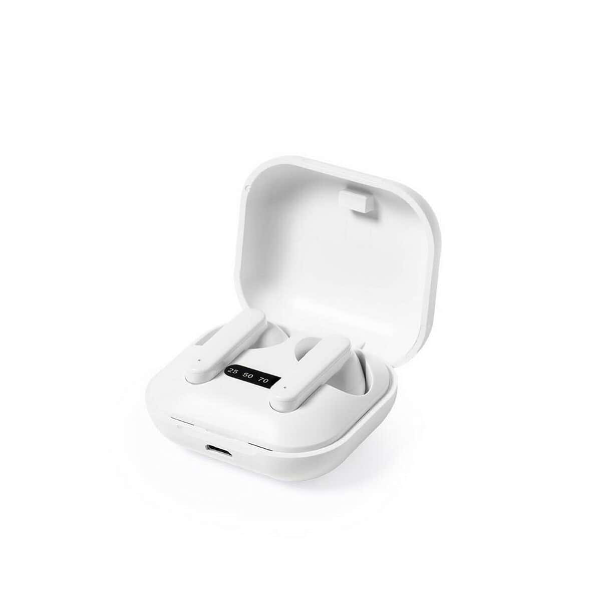 Bezprzewodowe słuchawki douszne RABS to nowoczesny, wysoce funkcjonalny gadżet, który sprawdzi się w każdej kampanii upominkowej. Wykonane z trwałego materiału RABS w eleganckim białym kolorze, zachwycają niewielkimi wymiarami 5,5 x 2,6 x 4,8 cm, a zarazem bogatym wnętrzem. Zastosowany moduł BT 5.0 gwarantuje stabilne połączenie nawet do 10 m, a bateria słuchawek 35 mAh pozwala cieszyć się muzyką przez wiele godzin bez przerwy. Stacja ładująca 200 mAh z praktycznym wskaźnikiem LED informuje o poziomie energii i dba o to, by zestaw był gotowy do pracy zawsze, gdy tego potrzebujesz. W komplecie otrzymujesz kabel micro USB, dzięki któremu naładujesz słuchawki w każdym biurze czy domu 🎧.