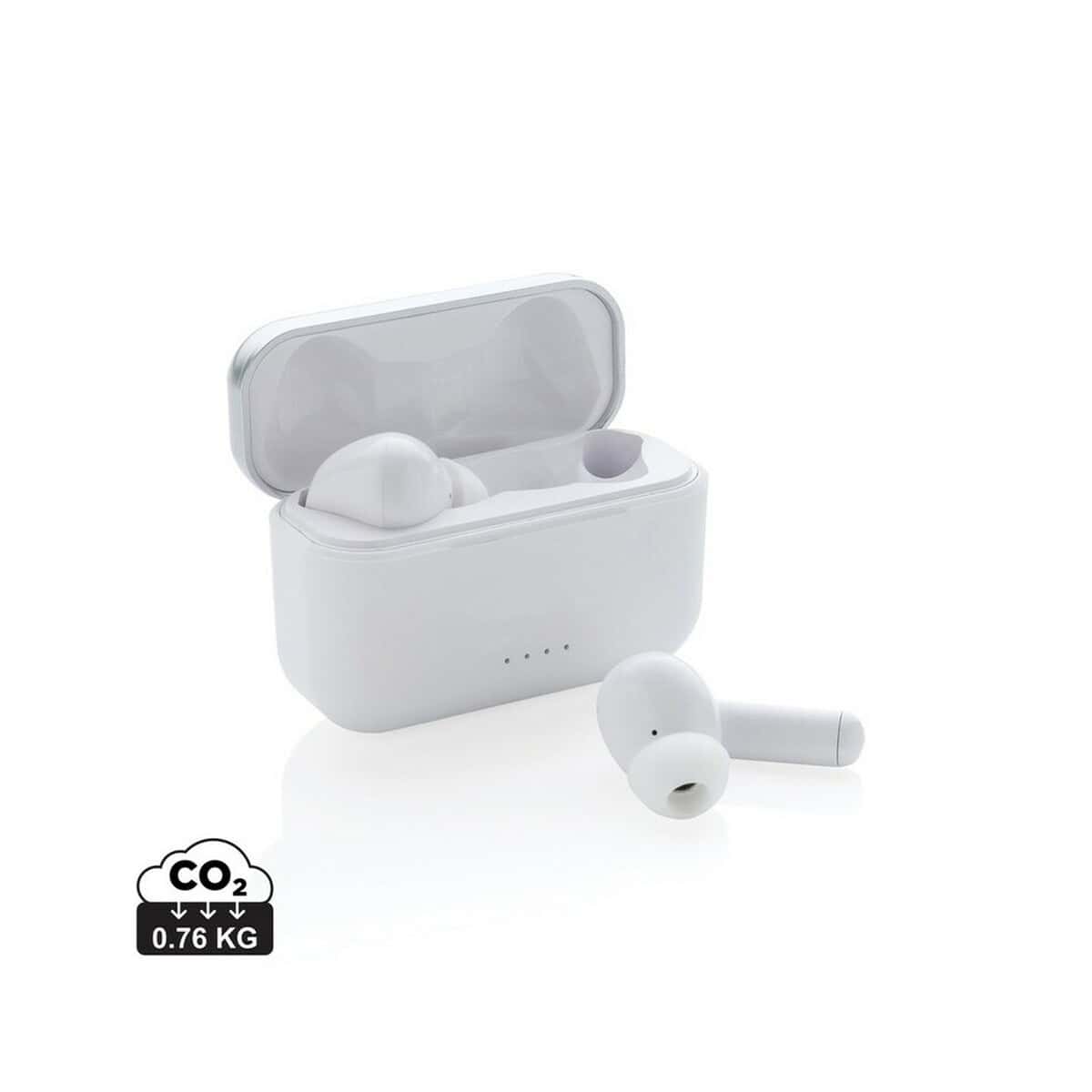 Bezprzewodowe słuchawki douszne TWS Pro Elite to nowoczesny gadżet, który łączy w sobie elegancki biały design i zaawansowaną technologię BT 5.0 😊. Wykonane z trwałego ABS, mieszczą się w kompaktowym etui 6,2 × 4,4 × 2,5 cm, które pełni funkcję mobilnej stacji ładującej z akumulatorem 300 mAh. Same słuchawki mają baterię 30 mAh, co pozwala cieszyć się czystym, mocnym dźwiękiem do 4 h, a ponowne naładowanie trwa tylko 1,5 h. Automatyczne parowanie, wbudowany mikrofon i intuicyjny przycisk dotykowy na boku ułatwiają odbieranie połączeń i sterowanie muzyką w zasięgu do 10 m. W komplecie są trzy rozmiary nakładek oraz kabel micro USB z TPE bez PVC. Ślad węglowy produktu wynosi zaledwie 0,76 kg CO₂, co podkreśla jego przyjazny charakter.