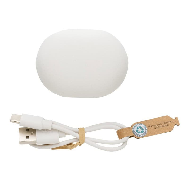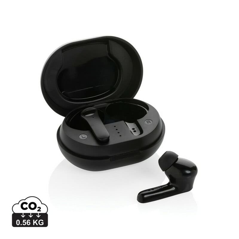 Bezprzewodowe słuchawki douszne to znakomity gadżet reklamowy, który przykuje uwagę każdego klienta już od pierwszego spojrzenia. Dzięki kompaktowym wymiarom 6,5 x 4,8 x 3,3 cm oraz nowoczesnej konstrukcji z rABS i TPE z recyklingu te słuchawki perfekcyjnie łączą ekologię z technologią. Certyfikat RCS potwierdza, że aż 67 % wagi produktu powstało z materiałów odzyskanych, co czyni je wyborem przyjaznym środowisku 🌱. Wbudowany moduł BT 5.0 i technologia TWS (True Wireless Stereo) gwarantują stabilne połączenie i czysty dźwięk do 10 m, a funkcja odbierania połączeń pozwoli prowadzić rozmowy w każdej sytuacji.