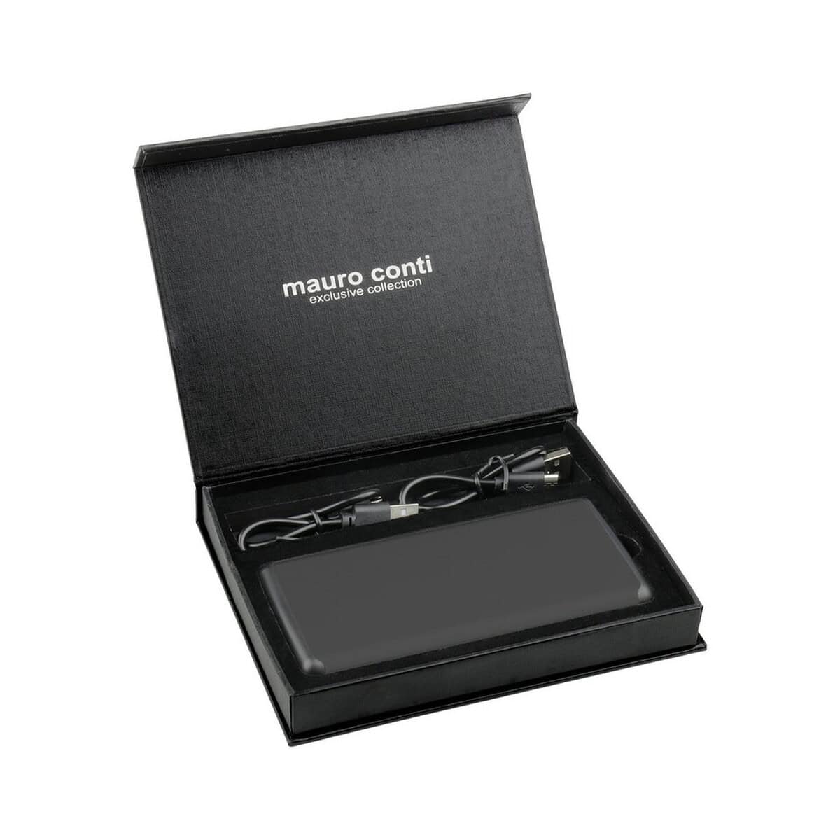 Bezprzewodowy power bank 10000 mAh Mauro Conti z przyssawkami, ładowarka bezprzewodowa 10W | Stef to znakomity, nowoczesny gadżet, który spełni oczekiwania zarówno miłośników technologii, jak i profesjonalistów potrzebujących niezawodnego źródła energii w każdej sytuacji. Jego kompaktowe wymiary 14 x 7 x 1,5 cm i masa jedynie 239 g sprawiają, że mieści się w kieszeni marynarki, plecaku czy torebce, a solidne połączenie aluminium i plastiku gwarantuje trwałość w codziennym użytkowaniu. Czarny kolor obudowy nadaje mu elegancji, a przyssawki stabilnie utrzymują smartfon w trakcie ładowania indukcyjnego 😊.