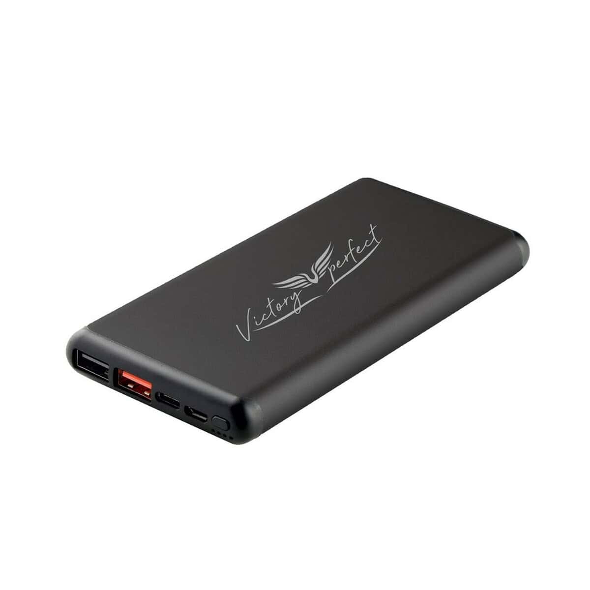 Urządzenie obsługuje szybkie ładowanie 10 W dla telefonów z funkcją Qi, a dodatkowe dwa wyjścia USB (5V/2.4A, łącznie 3A) oraz port USB-C (do 12V/1.5A) umożliwiają równoczesne zasilanie trzech urządzeń. W zestawie znajdziesz kable micro USB i USB-C oraz ozdobne pudełko – gotowe rozwiązanie reklamowe na event, targi czy akcję promocyjną. Dzięki dużej powierzchni pod nadruk lub logo to wymarzony produkt dla Twojej firmy, chcącej wyróżnić się praktycznym prezentem.