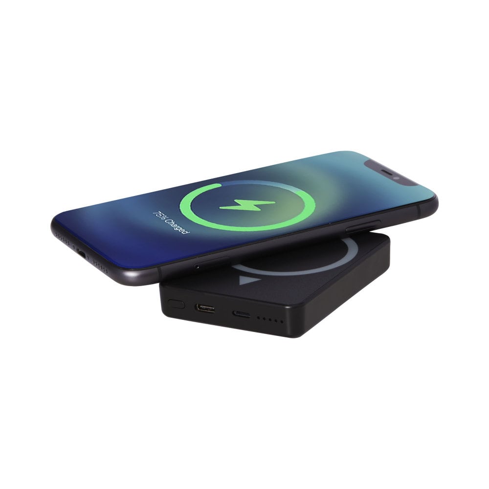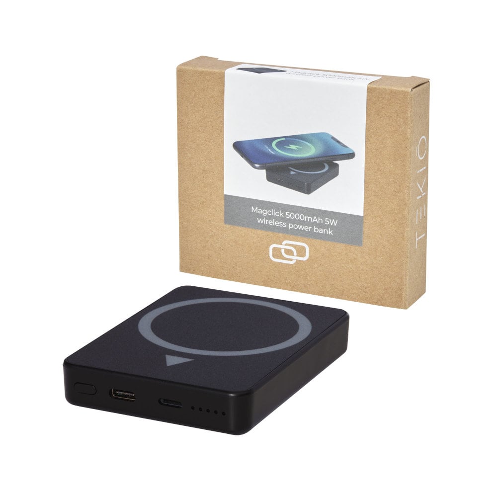 Powerbank Magnetyczny z technologią Magclick, to bezprzewodowe urządzenie do ładowania telefonu wyposażone w 32 wysokiej jakości magnesy N52 odporne na ciepło, dzięki czemu można je przymocować bezproblemowo do tylnej części iPhone 12/iPhone 12 Pro/iPhone 12 Pro MAX. Urządzenie to jest kompatybilne ze wszystkimi urządzeniami Qi (iPhone 8 lub nowszy oraz urządzenia z systemem Android, które obsługują ładowanie bezprzewodowe), a także oferuje jedno wejście/wyjście Type-C (5V/1.5A) oraz wejście typu Lightning (5V/1.5A) dla oryginalnego kabla firmy Apple. Powerbank jest wyposażony w bezprzewodową ładowarkę o mocy 5 W, a dla dbania o środowisko, nie dostarczany jest z kablem do akcesoriów. Produkt zapakowany jest w wysokiej jakości pudełku z papieru Kraft z kolorową naklejką.