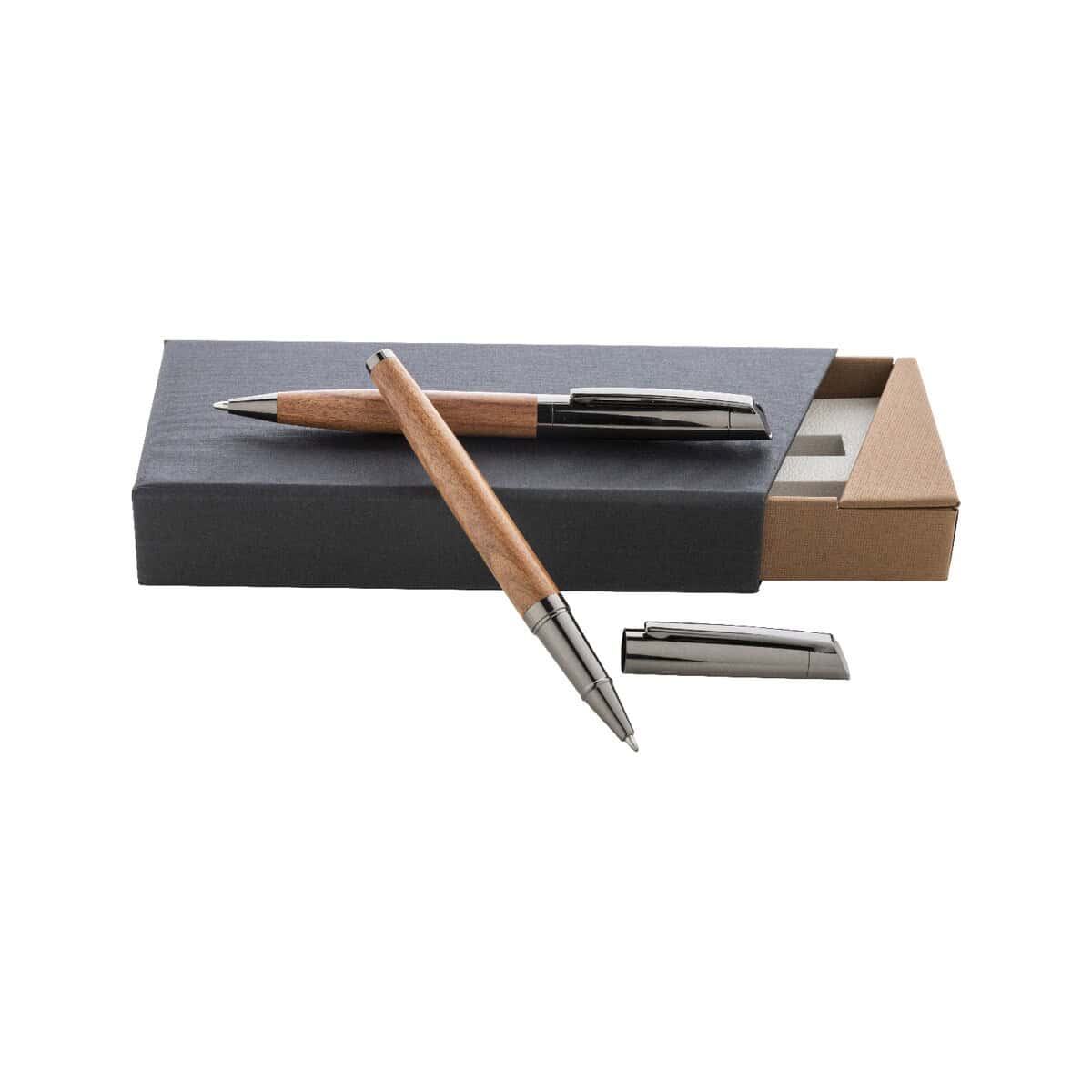 Nieprzeciętne walory estetyczne to jednak nie wszystko. Bidarray zestaw piśmienniczy stanowi znakomitą powierzchnię pod logo i subtelny nadruk, dzięki czemu przemienia się w praktyczny gadżet reklamowy. Drewniany korpus daje szerokie możliwości grawerowania, a metalowe wykończenia pozwalają umieścić trwały nadruk tampodrukiem lub laserem. Taki upominek sprawdzi się w kampaniach promujących branżę finansową, prawniczą, nieruchomości czy sektor premium automotive, gdzie liczy się styl i wysoka jakość.