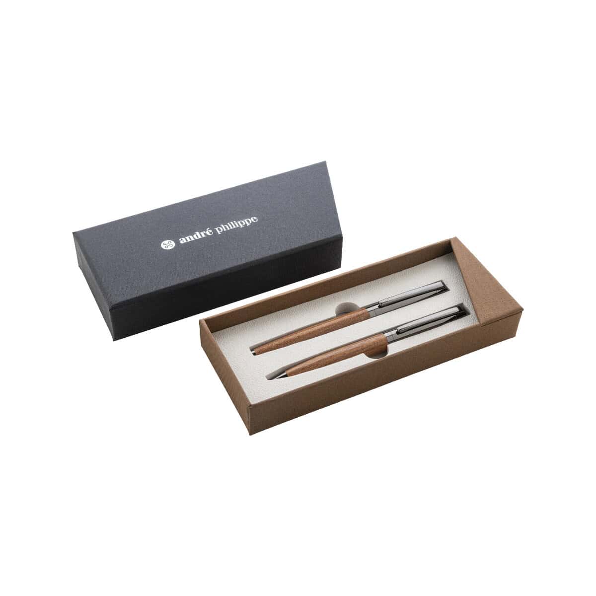Bidarray zestaw piśmienniczy to wyrafinowana propozycja dla miłośników eleganckiego pisania i prestiżowej prezentacji. W skład kompletu wchodzi metalowy długopis oraz pióro kulkowe osadzone w szlachetnym, drewnianym korpusie, uzupełnionym o błyszczące, chromowane detale, które przyciągają wzrok już od pierwszego spojrzenia 😊. Całość znajduje się w stylowym, dwukolorowym pudełku prezentowym, dzięki czemu od razu staje się gotowym upominkiem. Wymiary: 180×75×30 mm, waga: 144 g – te parametry sprawiają, że produkt leży w dłoni pewnie, a jednocześnie nie obciąża torby czy aktówki. Materiał: metal, drewno oraz kolor: naturalny podkreślają ekskluzywny charakter zestawu, natomiast niebieski wkład gwarantuje płynność pisania i profesjonalny wygląd podpisów.