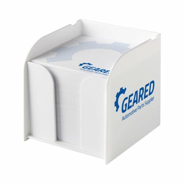Plastikowy stojak na bloczek Vessel to wygodny sposób na przechowywanie arkuszy papieru. Bloczek zawiera około 800 arkuszy (80 g/m2) czystych kartek. Stojak wykonany jest z trwałego plastiku, dzięki czemu jest odporny na uszkodzenia i zapewnia bezpieczne przechowywanie. Ponadto, pozwala na wykonanie cyfrowego nadruku lub tampodruku na każdej z trzech krawędzi. Dodatkowo, możliwe jest zdobienie każdego arkusza. Stojak jest idealnym wyborem do biura, szkoły lub do użytku domowego.