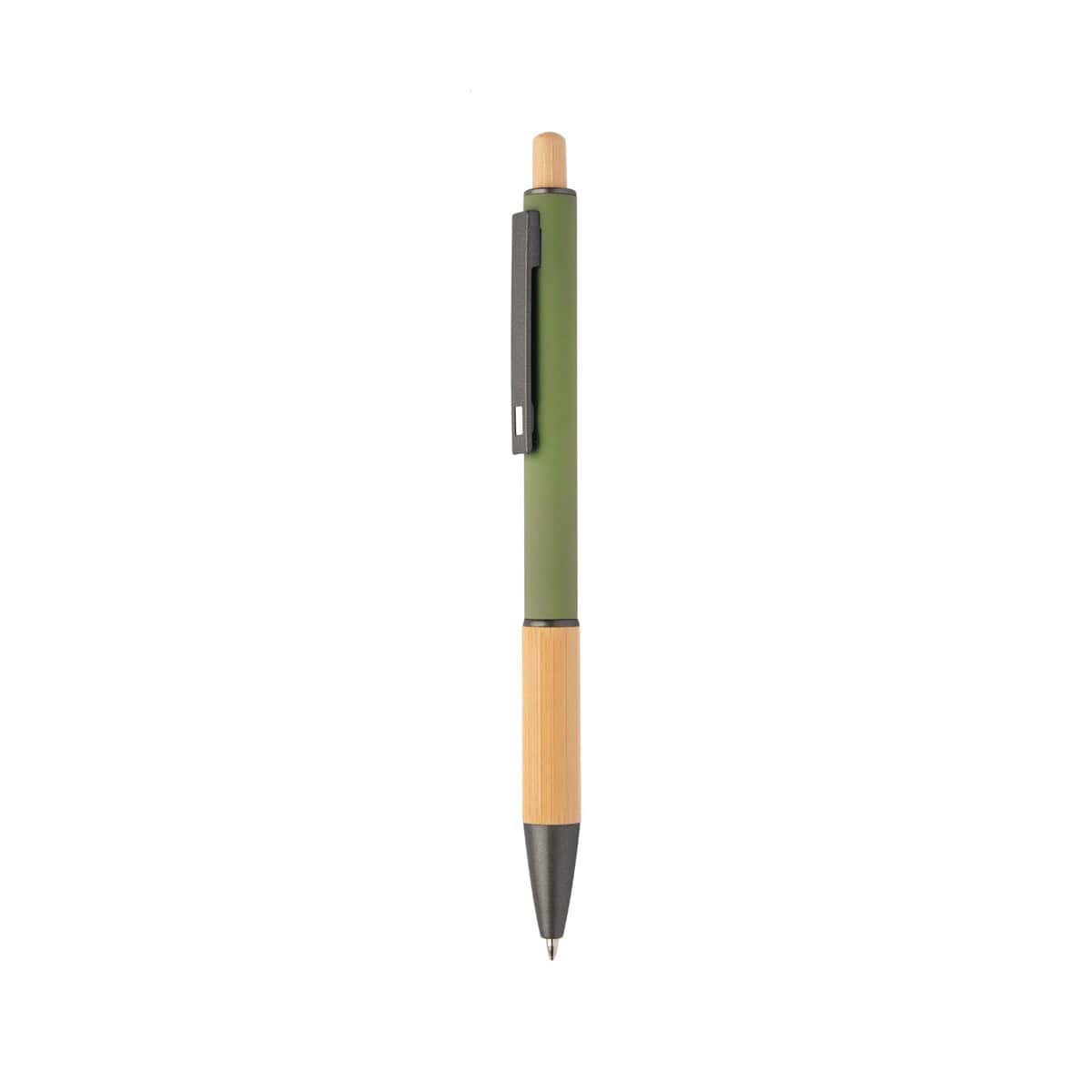 Bogri długopis to doskonały, ekologiczny gadżet, który podniesie prestiż każdej kampanii promocyjnej 😊. Wykonany z aluminium pochodzącego z recyklingu, z eleganckim uchwytem i przyciskiem z naturalnego bambusa, świetnie łączy nowoczesność z troską o środowisko. Gumowany korpus oraz subtelne elementy z brązu gwarantują komfort pisania i przyciągają wzrok, a niebieski wkład sprawdzi się w codziennym użytkowaniu. Dzięki smukłym wymiarom ø9×138 mm i niewielkiej wadze 13 g produkt z łatwością zmieści się w kieszeni, notesie czy etui. Dostępny w aż siedmiu stylowych kolorach – zielonym, czerwonym, białym, czarnym, szarym, niebieskim i ciemnoniebieskim – pozwala perfekcyjnie dopasować się do identyfikacji wizualnej Twojej firmy.