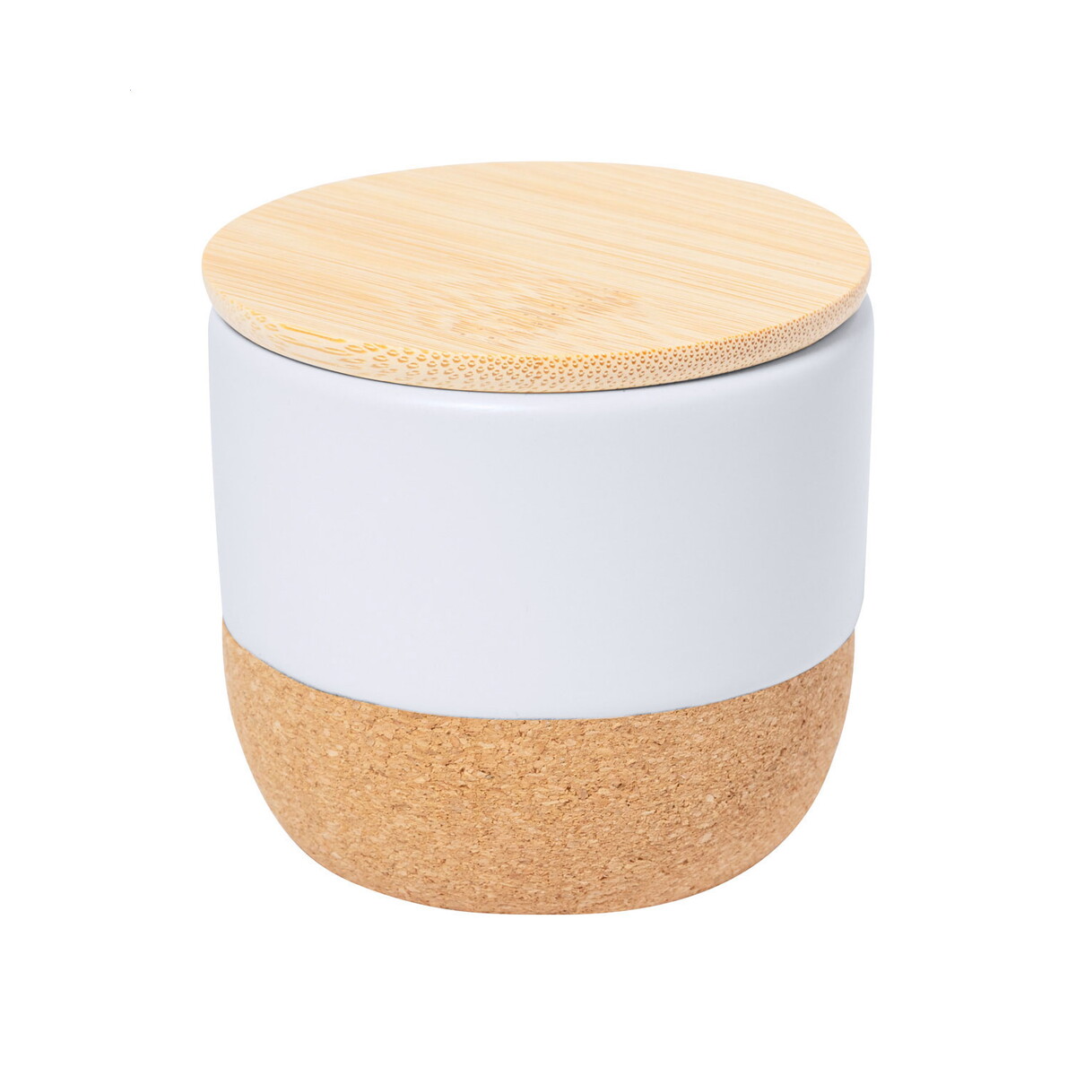 Borrox świeca / świeczka to doskonały sposób, aby subtelnie podkreślić charakter Twojej marki i wprowadzić przyjemny aromat wanilii do każdego wnętrza. Ten elegancki gadżet z kategorii Świece z logo, wykonany z naturalnego wosku roślinnego, zamknięty jest w ceramicznym pojemniku o wymiarach ø70×66 mm, opatrzonym podstawą z naturalnego korka i praktyczną bambusową pokrywką. Dzięki swojej kompaktowej wadze 188 g bez trudu zmieści się w paczce upominkowej, a biały odcień ceramiki idealnie skomponuje się z dowolną paletą firmowych barw 🎁.