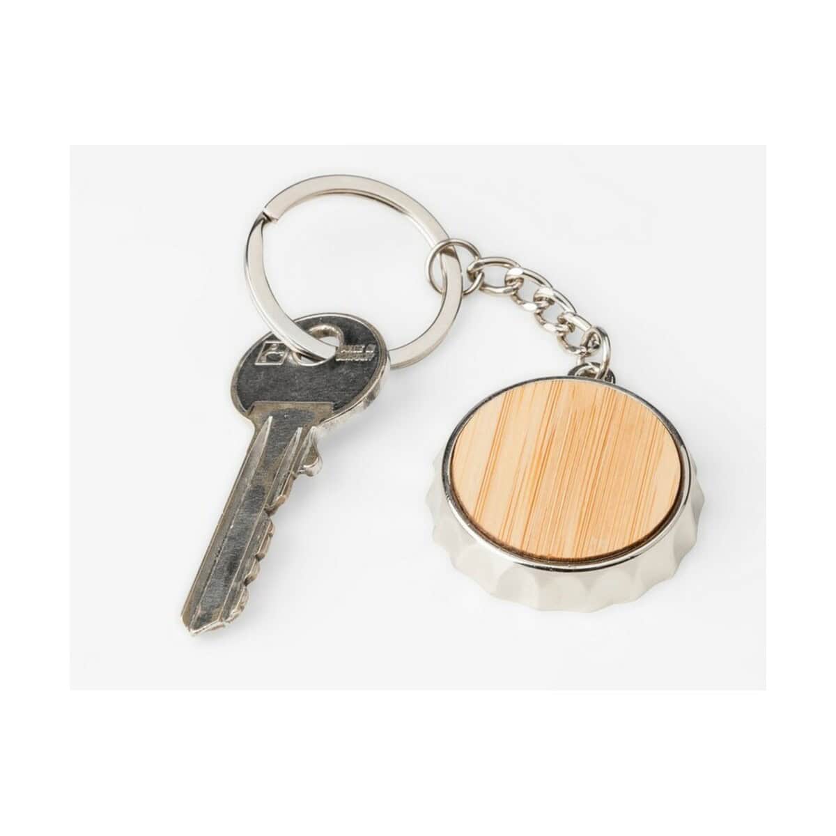 Brelok do kluczy, otwieracz do butelek „kapsel” to sprytne połączenie praktycznego akcesorium i efektownego nośnika logo. Dzięki kompaktowym wymiarom 3,8 x 7,1 cm i lekkiej wadze 29 g bez trudu zmieści się w kieszeni, plecaku czy torebce, zawsze będąc pod ręką, gdy trzeba odkręcić ulubiony napój. Solidny materiał: metal gwarantuje wytrzymałość, a naturalny bambus w ciepłym, brązowym odcieniu podkreśla ekologiczny charakter produktu i przyciąga wzrok odbiorcy 🙂.