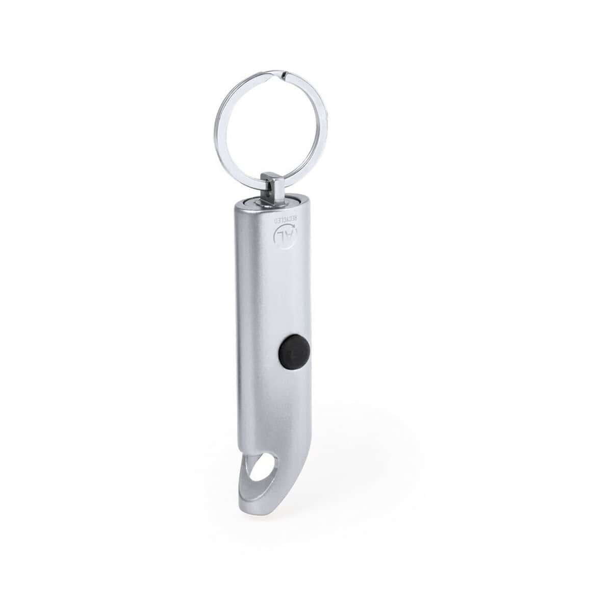 Tę wielofunkcyjną perełkę docenią wszyscy, którzy cenią praktyczne drobiazgi: kierowcy, rowerzyści, bywalcy koncertów, pracownicy biur terenowych czy uczestnicy festiwali. Wbudowana lampka 3 LED doświetli zamek w drzwiach lub schowek w aucie, solidny otwieracz sprawdzi się podczas pikników i imprez firmowych, a metalowe kółko bezpiecznie pomieści cały pęk kluczy. Brelok do kluczy z aluminium z recyklingu, otwieracz do butelek, lampka LED to również niezawodny strażnik porządku w torbie lub kieszeni.