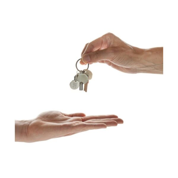 Ten brelok do kluczy, żeton do wózka na zakupy to wielofunkcyjny gadżet, który z pewnością przypadnie do gustu każdemu, kto ceni sobie praktyczne i estetyczne rozwiązania. Wykonany z metalowego materiału pochodzącego z recyklingu (75% całkowitej zawartości), ten solidny i trwały dodatek jest nie tylko przyjazny dla środowiska, ale i stylowo prezentuje się w każdej sytuacji.