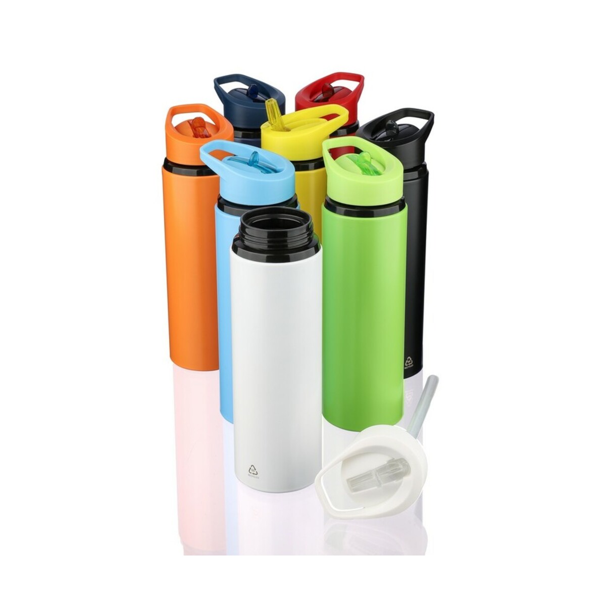Butelka sportowa 500 ml to znakomite połączenie funkcjonalności, designu i troski o środowisko. Wykonana w całości z stal nierdzewna 304 z recyklingu, posiada elegancką ikonę recyklingu, która podkreśla proekologiczny charakter produktu. Dzięki wymiarom ø7 x 8,3 x 24,4 cm i wadze zaledwie 176 g, butelka jest lekka, poręczna i bez trudu zmieści się w torbie treningowej, plecaku czy uchwycie rowerowym. Dostępność w aż ośmiu energetycznych kolorach – od żółtego po czarny – sprawia, że każdy znajdzie wariant pasujący do własnego stylu. 🙂