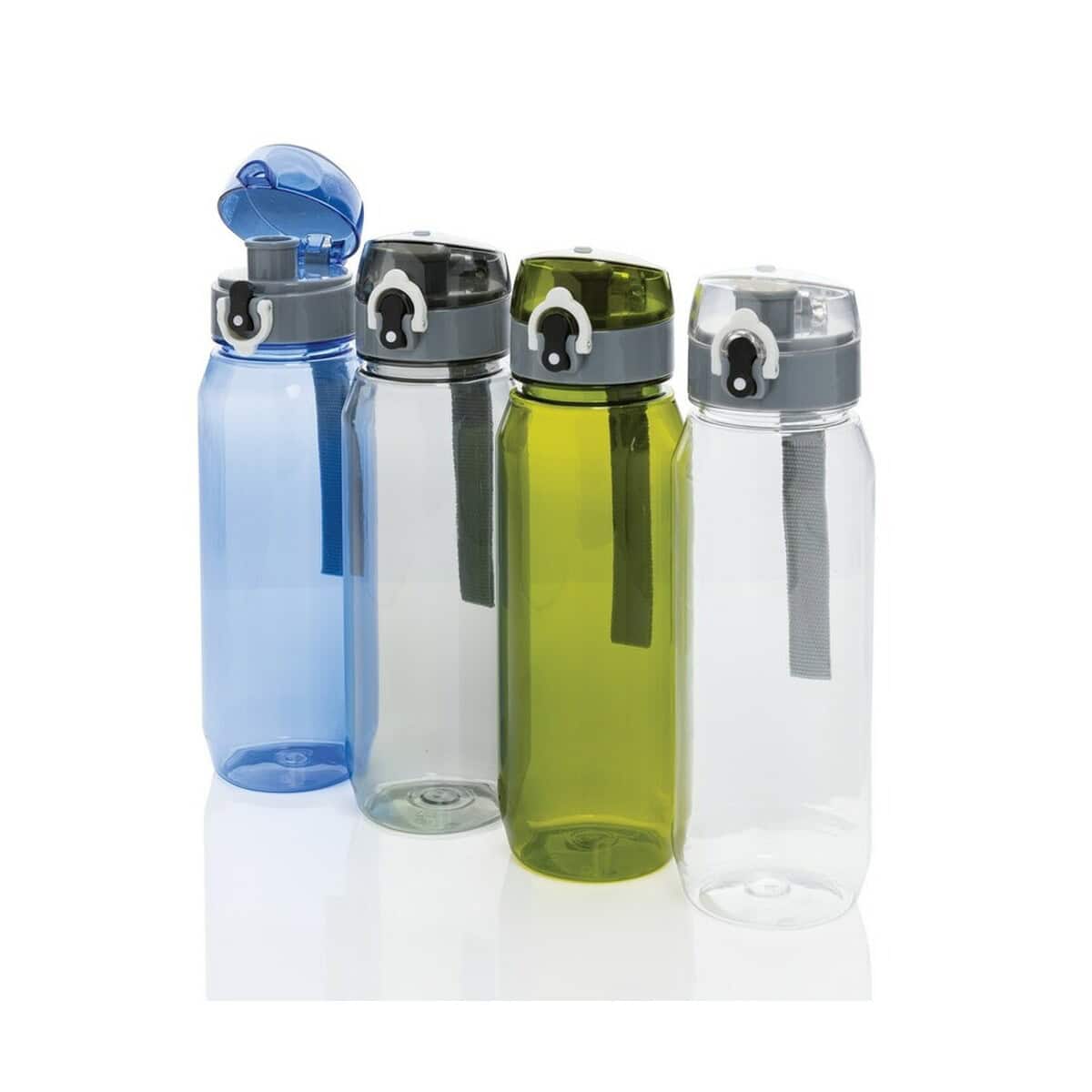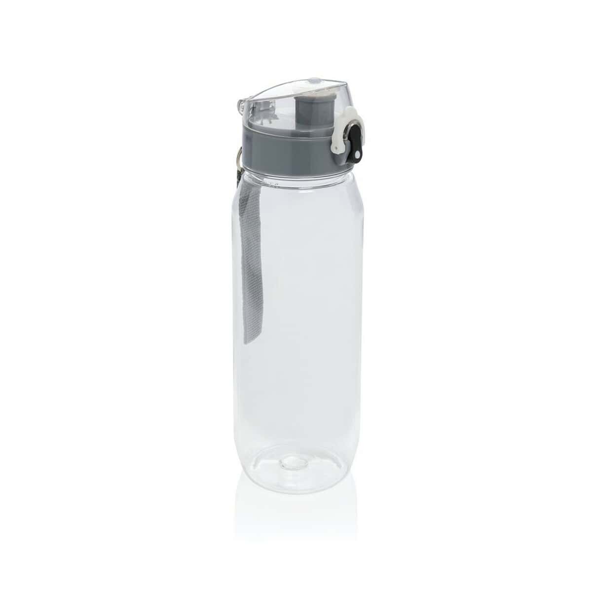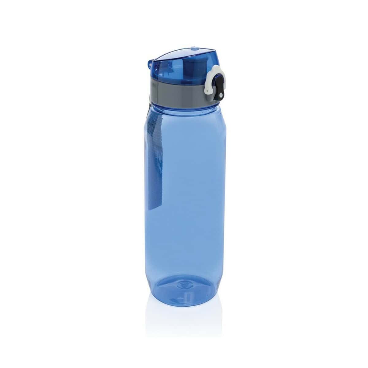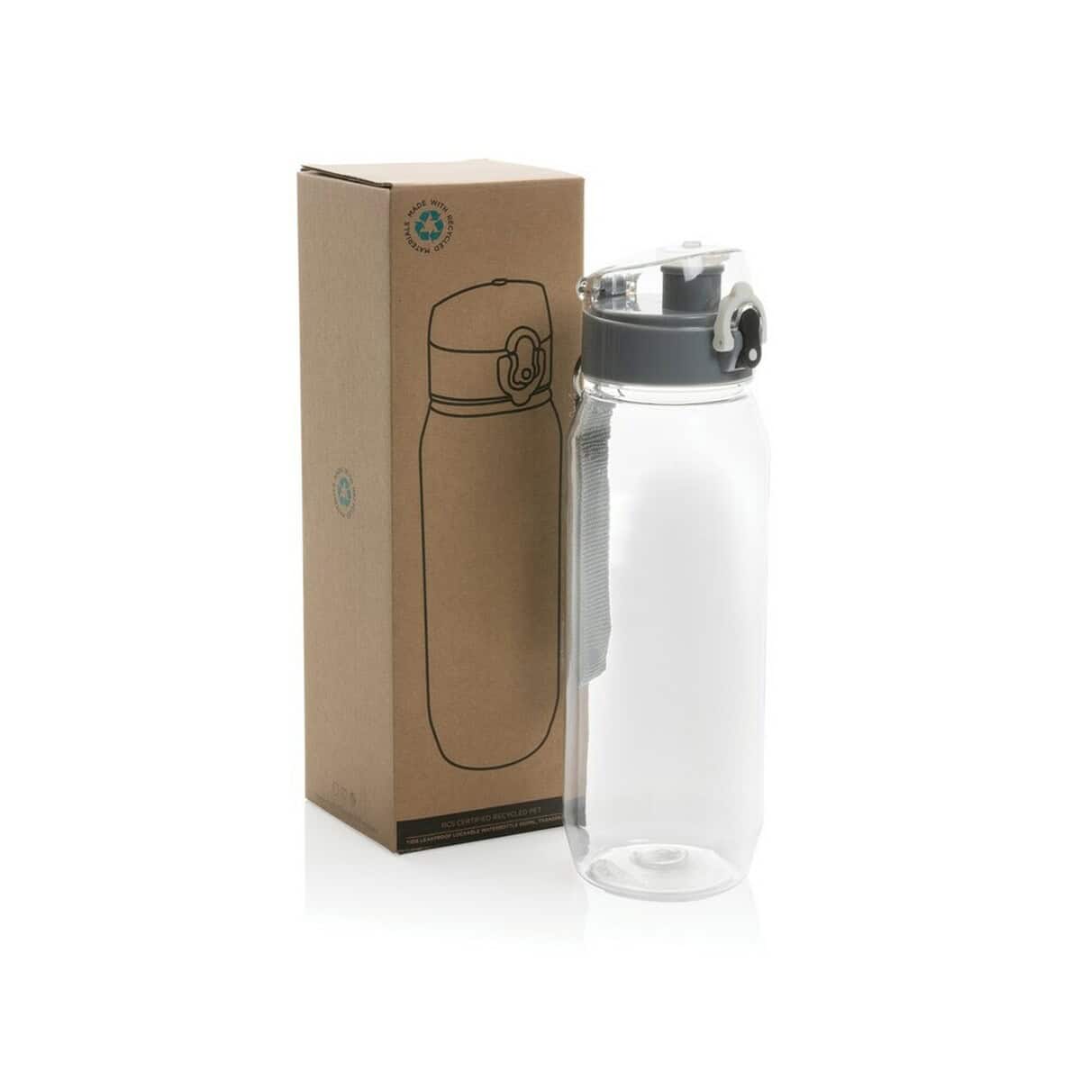 Butelka sportowa 800 ml Yide, RPET to doskonały towarzysz każdej aktywnej osoby i ekologiczny gadżet promocyjny 😊. Wykonana w 73% z materiału z recyklingu (RPET), z poręcznym uchwytem i smukłym kształtem 25 × ø7,8 cm, pozwala wygodnie pić jedną ręką, gdy druga zajęta jest kierownicą roweru czy hantlem. Dzięki czterem wersjom kolorystycznym – niebieskiej, przezroczystej, czarnej i zielonej – znakomicie dopasujesz barwę do identyfikacji wizualnej marki, a solidne wieczko z PP chroni zawartość przed rozlaniem. W zestawie znajduje się eleganckie pudełko z papieru kraftowego z certyfikatem FSC®, podkreślające proekologiczny charakter produktu. Niewielki ślad węglowy (0,64 kg CO₂) czyni tę butelkę przyjazną planecie, a duża pojemność 800 ml gwarantuje odpowiednie nawodnienie podczas treningu, spaceru czy pracy w terenie.