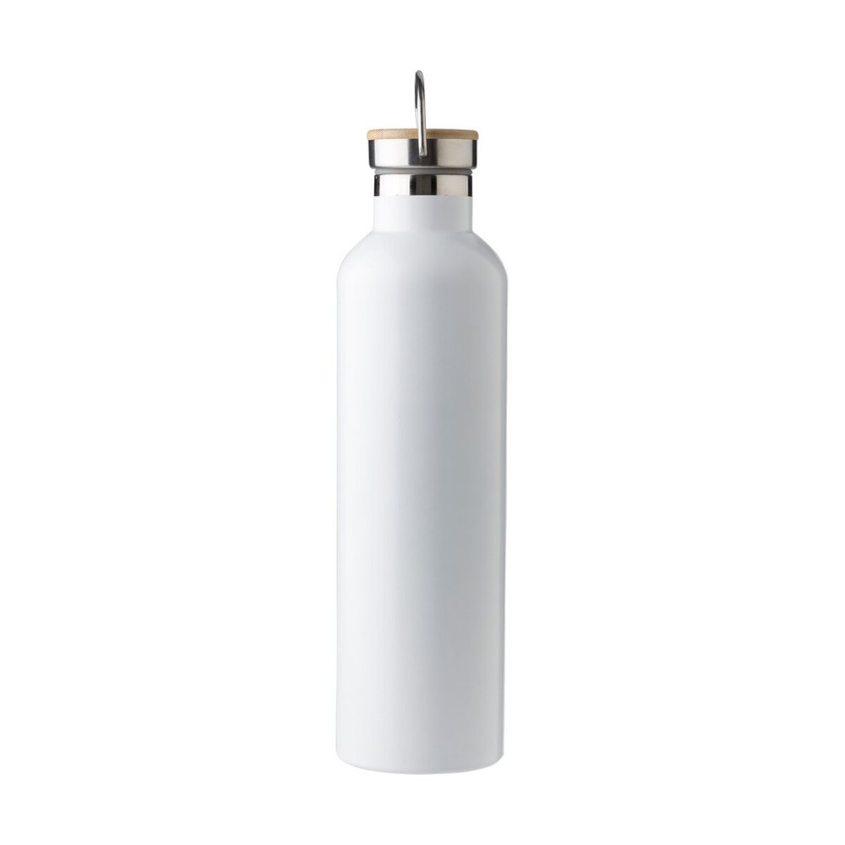 Estetyczny design butelki, dostępnej w kolorach białym, czarnym, niebieskim i srebrnym, został wzbogacony o zakrętkę z elementem z bambusa, co dodaje produktowi naturalnego charakteru i elegancji. Dzięki niewielkim wymiarom (średnica około 8 cm) butelka jest wygodna w transporcie i idealnie pasuje do większości uchwytów samochodowych oraz torb sportowych.