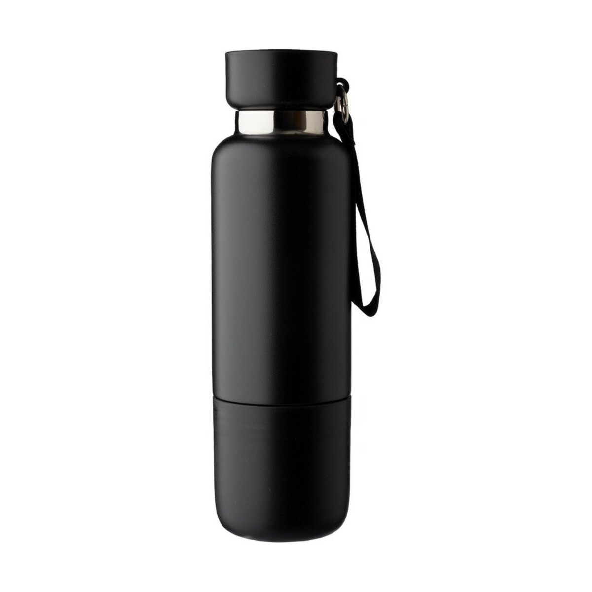 Design butelki została przemyślana z dbałością o szczegóły. Matowe wykończenie nie tylko wygląda elegancko, ale także zapewnia lepszą przyczepność i komfort użytkowania. Uchwyt z poliestru ułatwia przenoszenie i transport, a zakrętka wykonana z PP oraz funkcjonalny kubek umożliwiają wygodne i higieniczne korzystanie z napoju w każdej sytuacji. Produkt jest dostępny w trzech nowoczesnych kolorach: czarnym, niebieskim i szarym, dzięki czemu każdy znajdzie model odpowiadający swojemu gustowi.