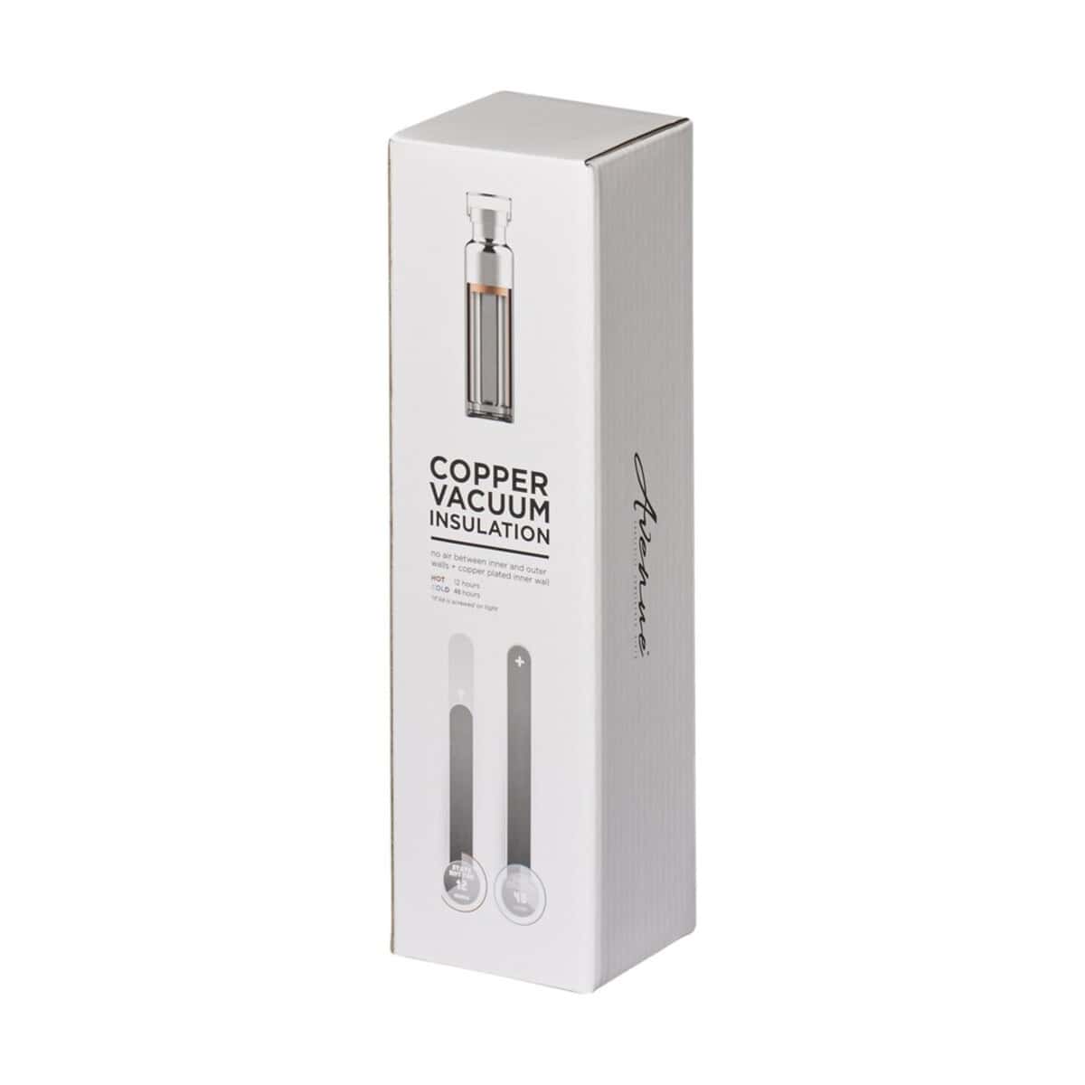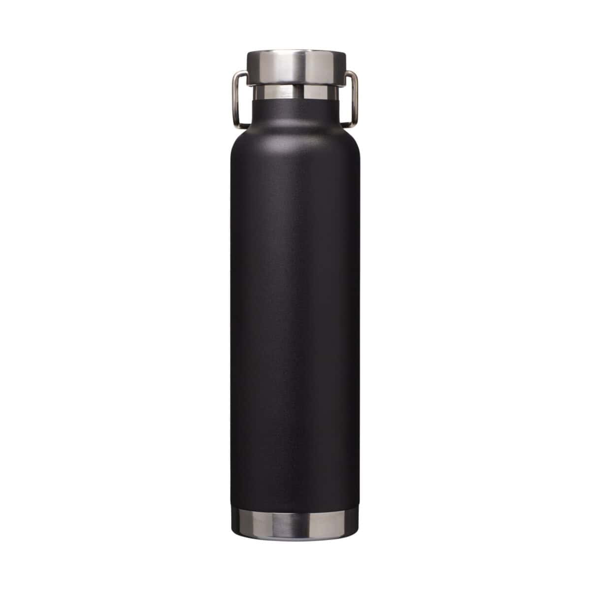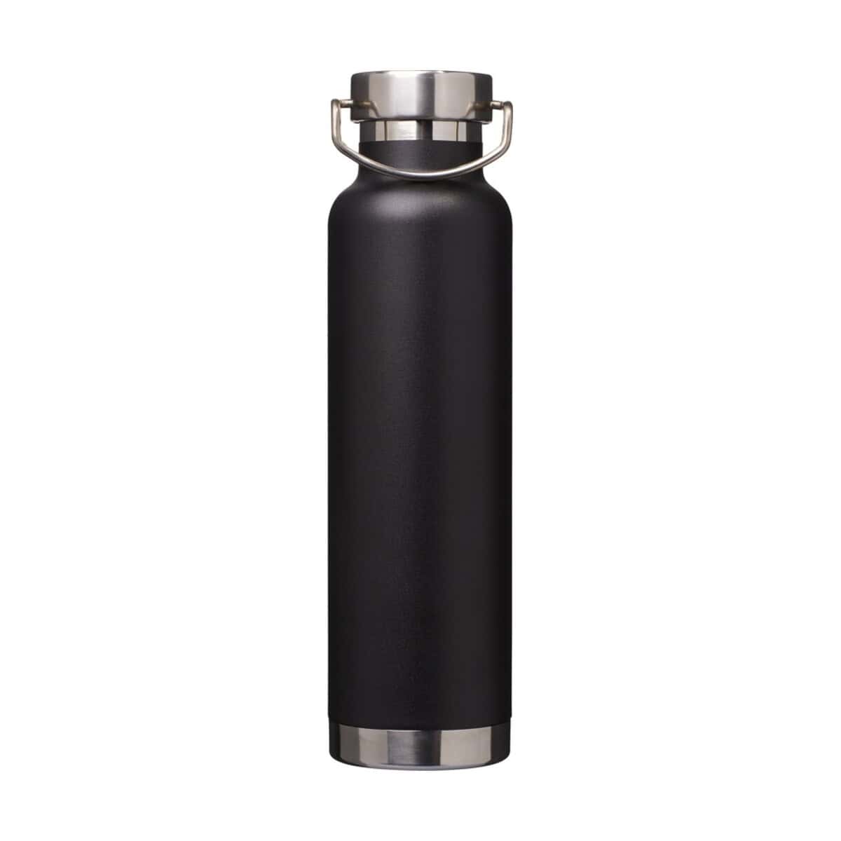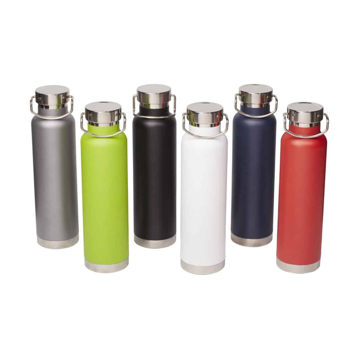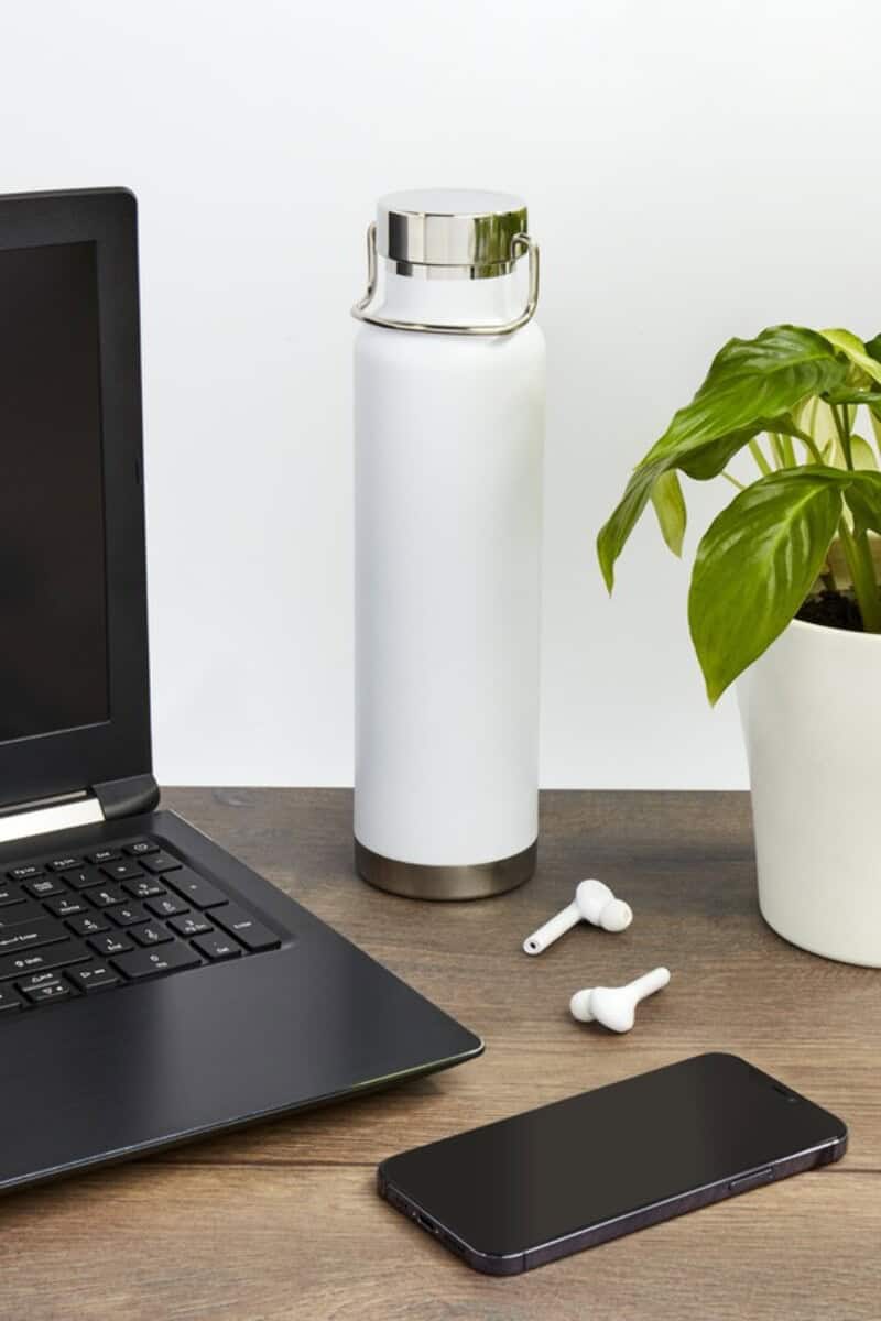 Butelka Thor z miedzianą izolacją próżniową to znakomity sposób, by wyróżnić się podczas każdego firmowego spotkania lub eventu plenerowego. Dzięki konstrukcji z podwójnymi ściankami ze stali nierdzewnej i miedzianej izolacji próżniowej utrzymuje napoje zimne aż 48 h, a gorące co najmniej 12 h, eliminując przy tym skraplanie na ściankach. Modne wykończenie proszkowe w sześciu kolorach – czarnym, czerwonym, szarym, niebieskim, zielonym i białym – gwarantuje elegancję, która przyciąga wzrok 🙂. Pojemność 650 ml, wymiary 27,2 × Ø 7,3 cm oraz waga jedynie 377 g czynią butelkę wyjątkowo poręczną.