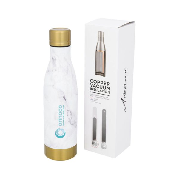Butelka Vasa to niezwykle wytrzymała i funkcjonalna propozycja na prezent dla bliskich. Wykonana ze stali nierdzewnej stopnia 18/8, z izolacją próżniową i ściankami wewnętrznymi pokrytymi powłoką miedzianą, zapewnia skuteczną ochronę zarówno ciepłych, jak i zimnych napojów. Powłoka imitująca kamień daje efekt wizualny, a pojemność 500ml sprawia, że butelka jest wystarczająco pojemna. Dzięki wysokiej izolacji próżniowej napój utrzyma optymalną temperaturę przez 12 godzin lub 48 godzin w zależności od potrzeb. Butelka została zapakowana w pudełko upominkowe Avenue, co sprawia, że staje się idealnym prezentem.