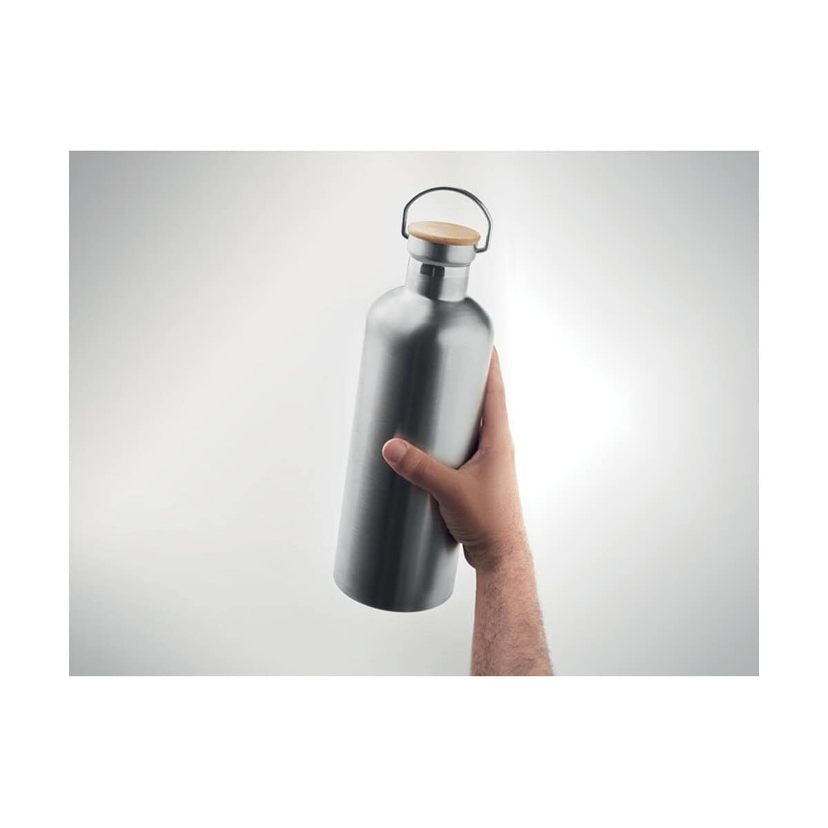 Butelka z podwójną ścianką1,5L HELSINKI EXTRA to wyśmienity wybór dla firm poszukujących praktycznego i efektownego upominku reklamowego. Jej konstrukcja z dwuściennej, próżniowej stali nierdzewnej o pojemności aż 1500 ml gwarantuje doskonałe właściwości termiczne, dzięki którym napoje pozostają ciepłe lub zimne przez wiele godzin. Wysokiej klasy materiał stainless steel dodatkowo nadaje butelce nowoczesny połysk w kolorze srebrnym, a naturalna, bambusowa zakrętka z wygodnym uchwytem podkreśla ekologiczny charakter produktu. Niewielkie różnice w usłojeniu bambusa sprawiają, że każda sztuka jest unikalna, co czyni ją jeszcze bardziej atrakcyjnym gadżetem 😍.
