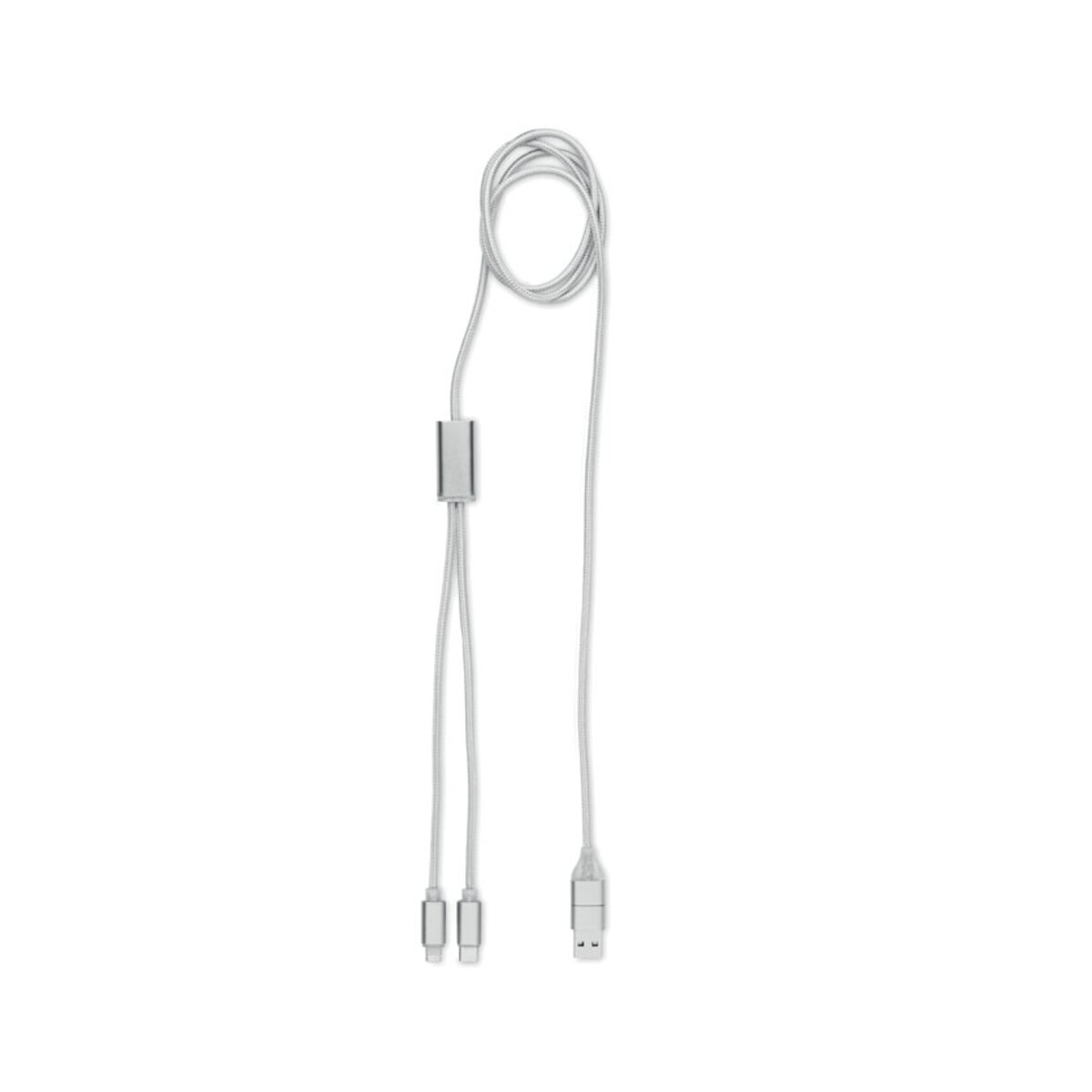 Produkt wykonany z aluminium i wielomateriałowej konstrukcji nie tylko zapewnia trwałość i odporność na uszkodzenia, ale także prezentuje się bardzo elegancko dzięki swojemu srebrnemu wykończeniu. Dzięki temu CABLONG Długi kabel do ładowania 2w1 świetnie sprawdzi się jako promocyjny gadżet w branży technologicznej, marketingowej lub jakiejkolwiek innej, gdzie elegancja połączona z funkcjonalnością staje się wartością dodaną dla wizerunku firmy.