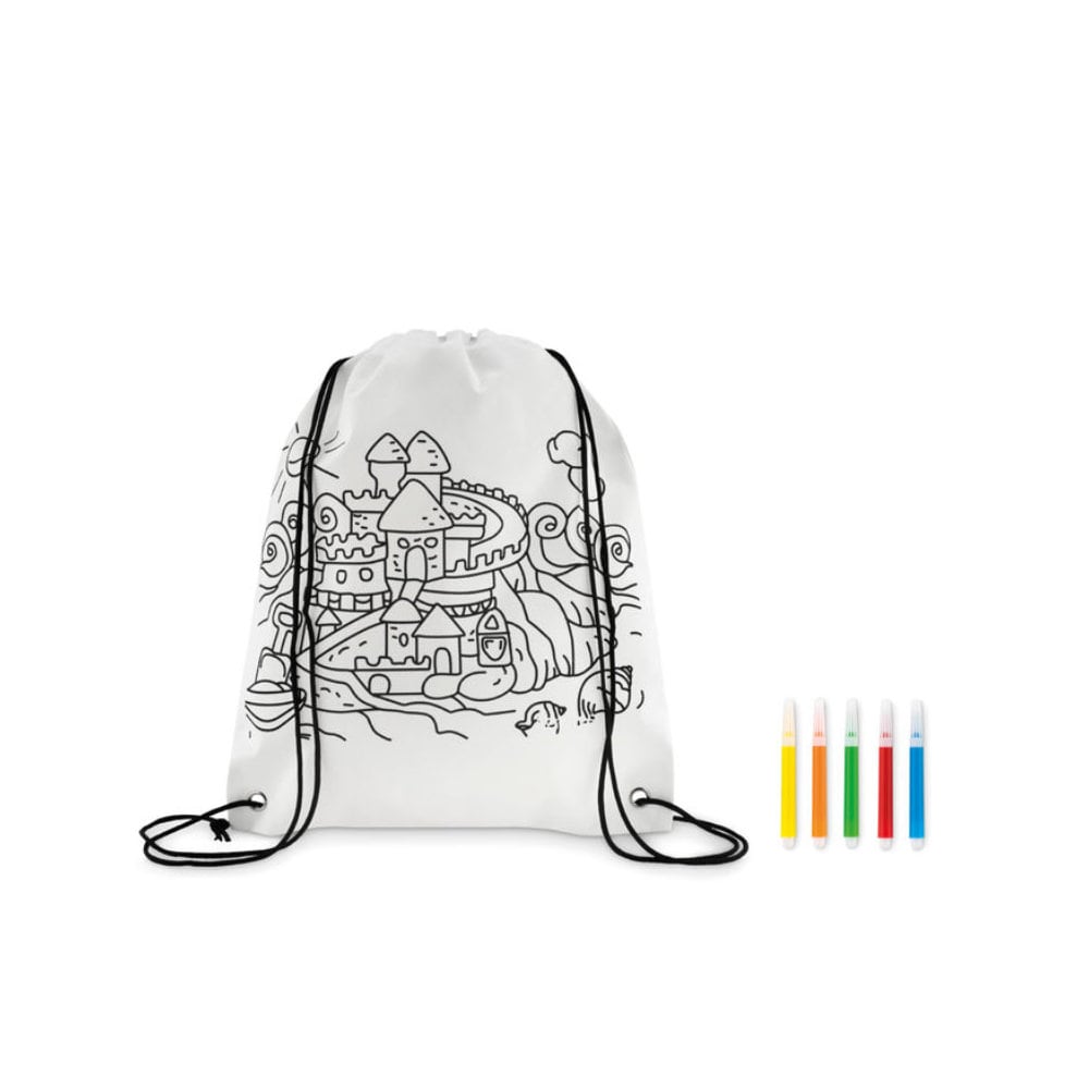 Worek ze sznurkiem do kolorowania, flamastry