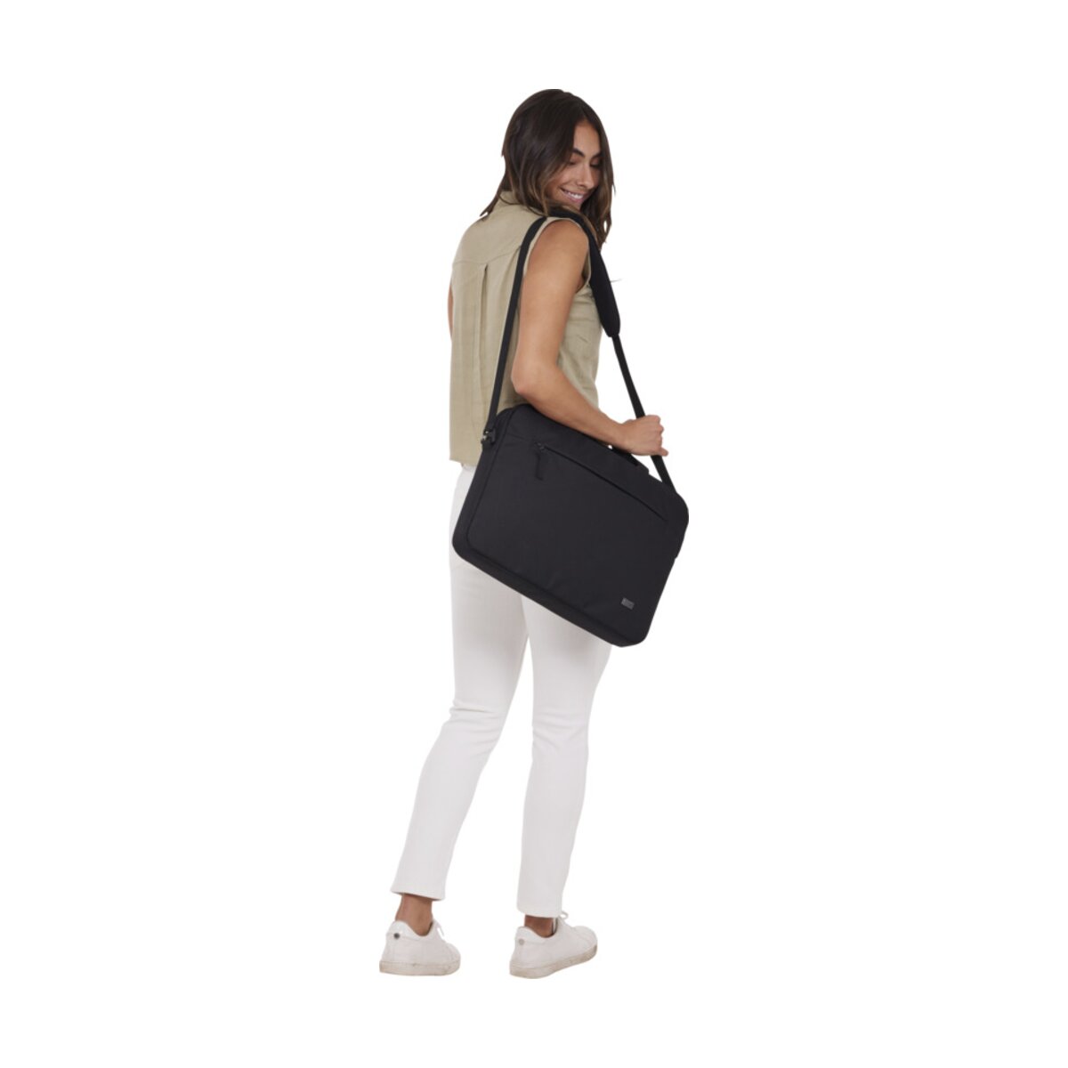 Case Logic Invigo torba na laptopa z wyściełaną komorą na laptopa i tablet oraz innymi przemyślanymi funkcjami przydatnymi na co dzień. Wykonana w 100% z poliestru 600D pochodzącego z recyklingu i podszewki z poliestru 150D. Posiada wyściełaną komorę na laptopa o średnicy ekranu 15,6 cali oraz kieszeń na tablet o średnicy ekranu 12,9 cali. We wnętrzu znajdują się kieszenie organizacyjne, a z przodu zapinana na zamek błyskawiczny kieszeń na małe przedmioty, takie jak klucze. Kieszeń na tylnym panelu pozwala schować ważne przedmioty, takie jak paszport czy portfel, a jednocześnie mieć je pod ręką. Torba posiada również pasek do mocowania bagażu, umożliwiający przymocowanie torby do bagażu na kółkach, co ułatwia podróżowanie.