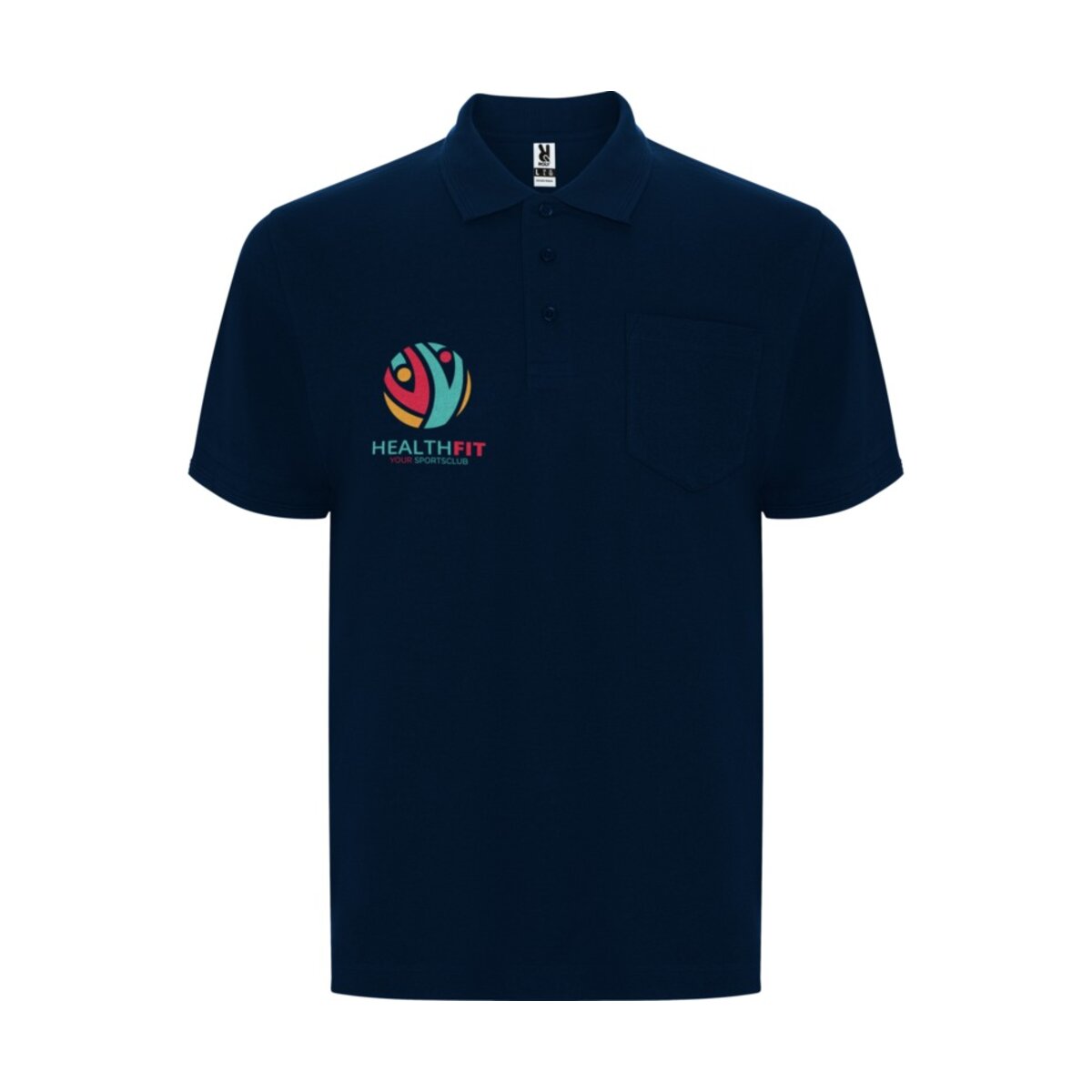 Koszulka polo z krótkim rękawem i kieszenią na lewej piersi. Kołnierz i mankiety z prążkowanego materiału 1×1 z detalami. Zapięcie na 3 guziki. Wzmocnione kryte szwy w kołnierzu. Usuwalna etykieta. Obróbka zapobiegająca mechaceniu się.