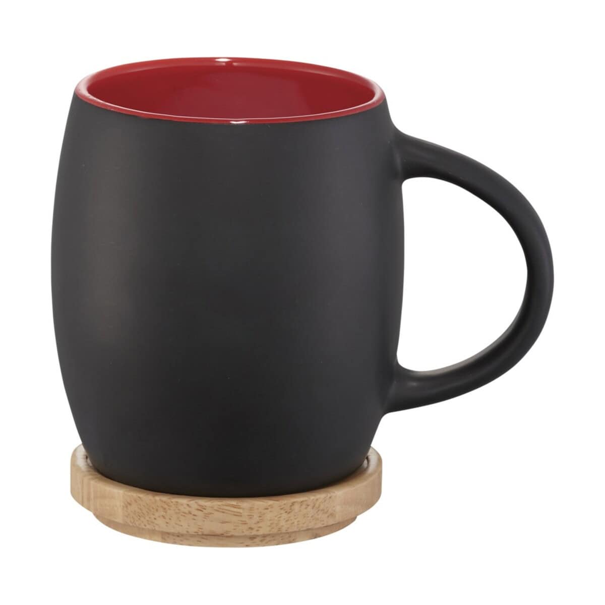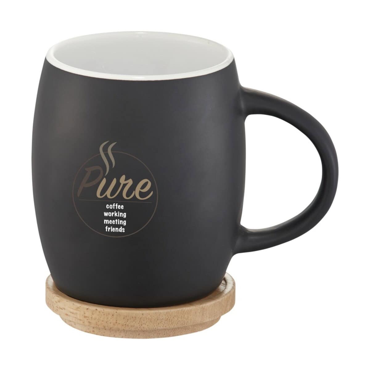 Ceramiczny kubek Hearth z drewnianym wiekiem/spodeczkiem to prawdziwy hit w kategorii Kubki z logo – elegancki, przytulny i w 100 % gotowy, by promować markę w każdej porannej rozmowie przy kawie ☕️. Jego pojemność 400 ml, wymiary 10,4 × Ø 7,5 cm oraz waga 480 g sprawiają, że leży stabilnie w dłoni, a matowe wykończenie w odcieniu głębokiej czerni podkreśla nowoczesny charakter produktu. Okrągły wzór i kontrastowy kolor wewnątrz przyciągają spojrzenia, dzięki czemu każdy nadruk firmowy będzie widoczny z daleka.