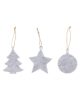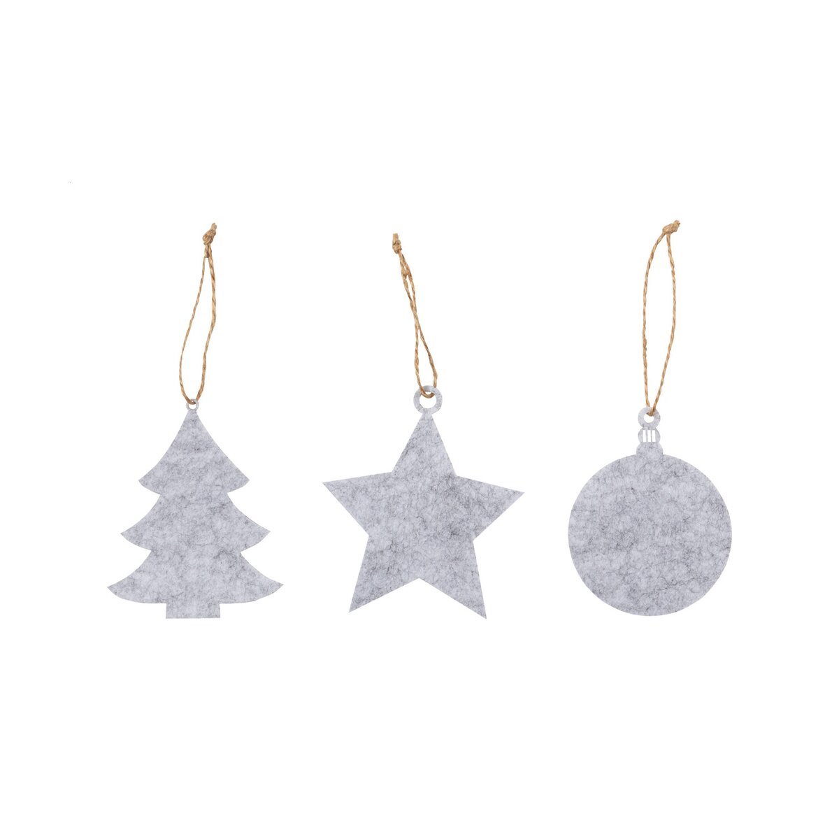 Zestaw składa się z trzech różnych kształtów: bombki, gwiazdy oraz choinki, każda o wymiarach 115×120×7 mm, co czyni je widocznymi, ale nie dominującymi elementami dekoracyjnymi. Materiał, jakim jest filc, nie tylko pięknie się prezentuje, ale jest także trwały i przyjazny dla środowiska.