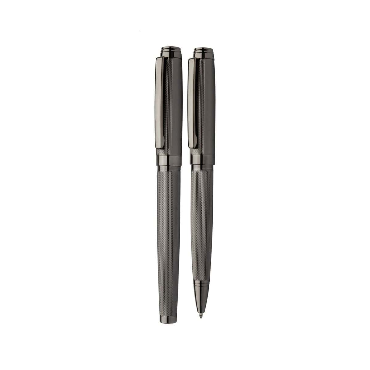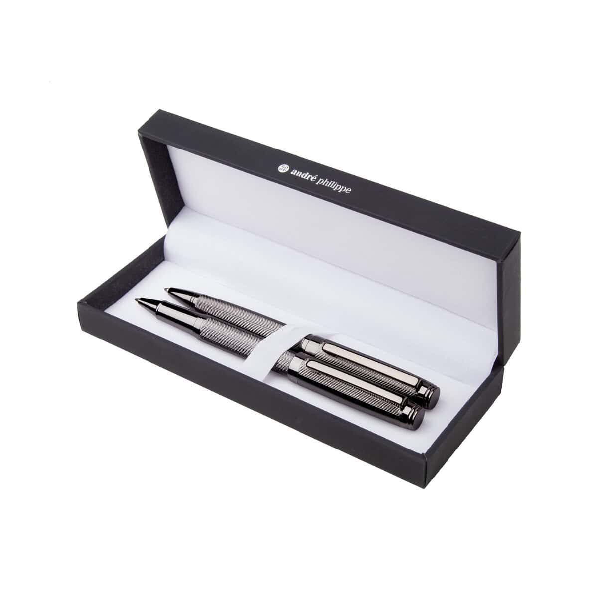 Chapelle zestaw długopisów to wyrafinowana propozycja, która zachwyci każdego miłośnika eleganckiego pisania. Składający się z metalowego długopisu oraz pióra kulkowego komplet mieści się w stylowym czarnym pudełku upominkowym, dzięki czemu stanowi gotowy prezent 🎁. Delikatne wzory na korpusach w kolorze srebrnym podkreślają jego klasę, a niebieskie wkłady gwarantują płynność pisania. Ten ponadczasowy gadżet świetnie sprawdzi się podczas promocji branży finansowej, nieruchomości, prawniczej czy luksusowych usług kosmetycznych, gdzie liczy się prestiż i pierwsze wrażenie.