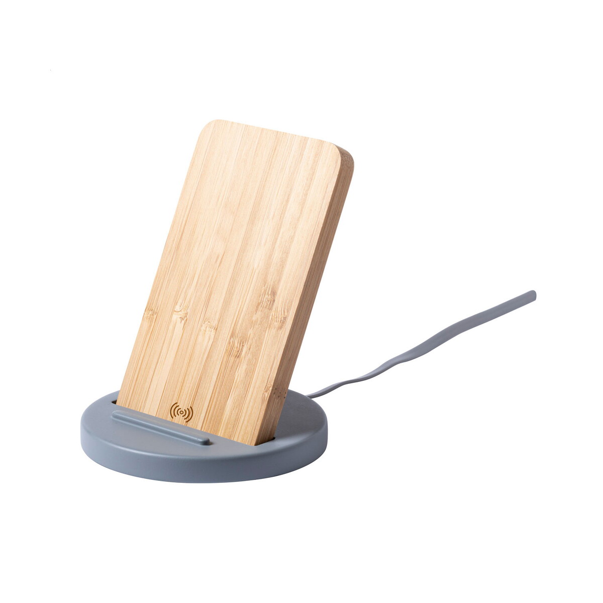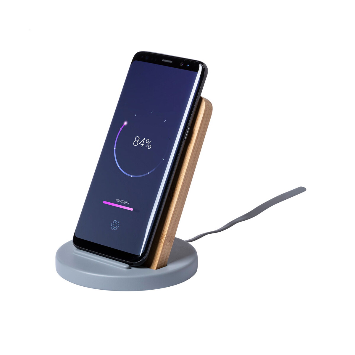 Wymiary: ø100×125 mm gwarantują stabilność nawet dla większych smartfonów, a waga: 250 g zapobiega przesuwaniu się urządzenia na biurku. Naturalny materiał: bambus w połączeniu z cementem nadaje całości unikalny charakter, a neutralne kolory: szary, naturalny dopasują się do każdego wnętrza. Kabel USB w odpowiadającej barwie podkreśla spójność wizualną produktu, tworząc zestaw reklamowy, który zwraca uwagę i budzi zaufanie.