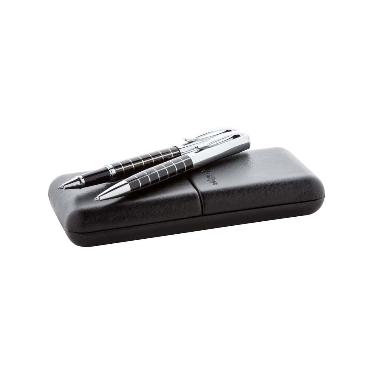 Przemyślane parametry produktu gwarantują wygodę użytkowania: Wymiary: 180×80×30 mm, Waga: 215 g, Materiał: Metal, Skóra PU, Kolory: czarny. Solidna metalowa konstrukcja zapewnia długowieczność, a eleganckie etui chroni długopisy przed zarysowaniami, jednocześnie będąc efektowną oprawą wręczanego prezentu. Osoby na stanowiskach menedżerskich, klienci premium czy partnerzy biznesowi docenią wysmakowane wzornictwo i praktyczność produktu.