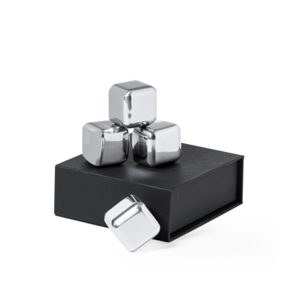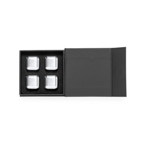 Produkt dostępny jest w zestawie czterech eleganckich kostek o wymiarach 9,5 x 3,5 x 9 cm, pakowanych w ozdobne pudełko, co sprawia, że stanowią one również doskonały pomysł na prezent. Kostki są idealne do whisky, soków, koktajli czy nawet kawy. Warto zaznaczyć, że są one także bardzo proste w użyciu – wystarczy umieścić je w zamrażarce na kilka godzin przed użyciem.