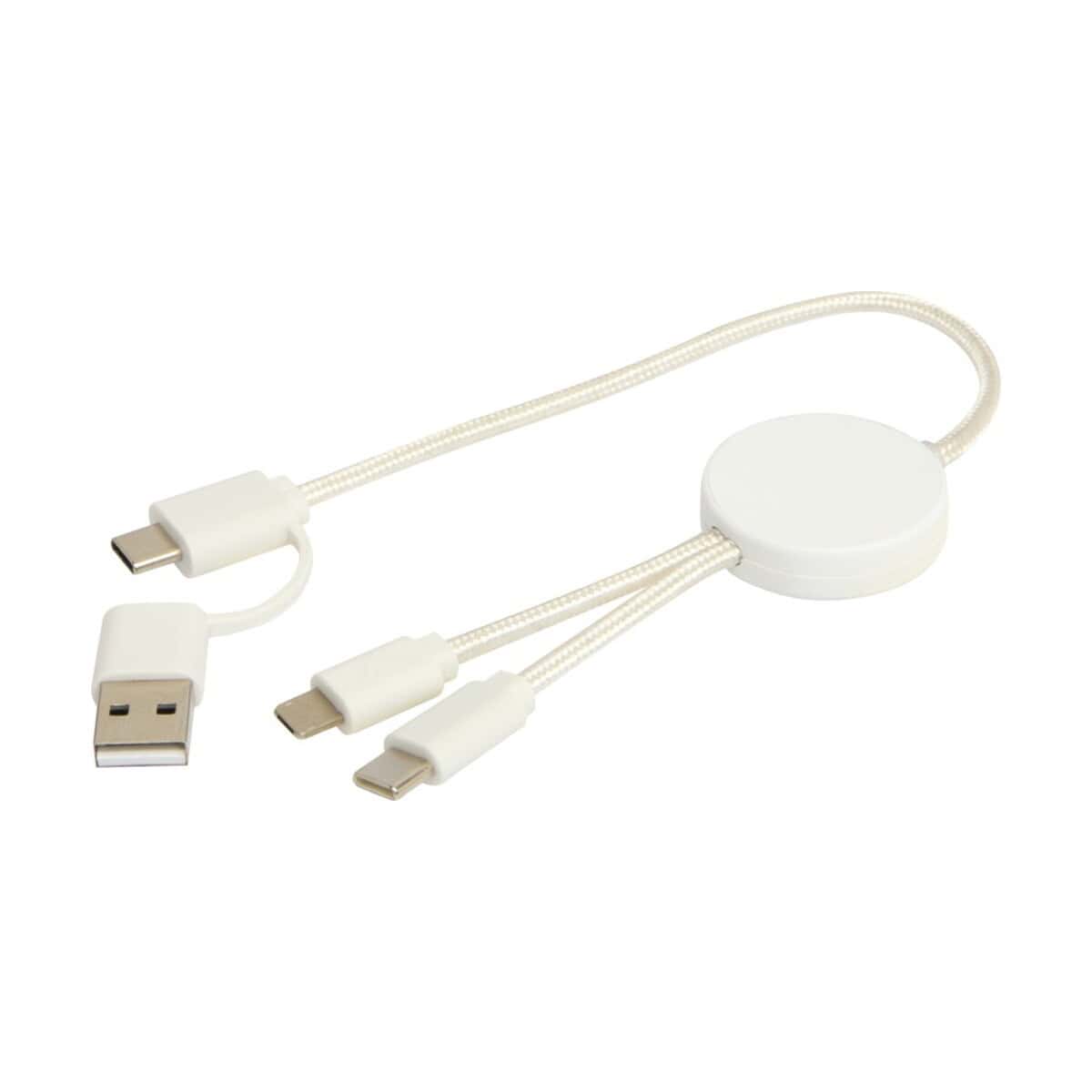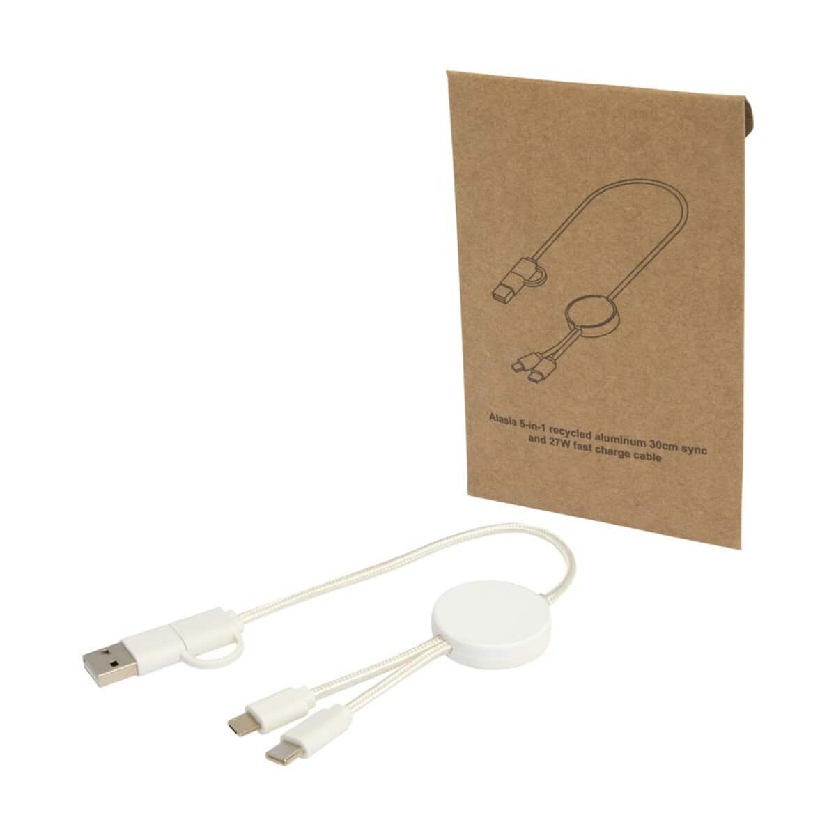 Citala kabel do synchronizacji danych i szybkiego ładowania 5 w 1 27 W o długości 30 cm z tworzyw sztucznych pochodzących z recyklingu okaże się perfekcyjnym prezentem dla przedstawicieli handlowych, kierowców flotowych, studentów i każdego miłośnika gadżetów, który ceni mobilność. Jego niewielkie wymiary (30 × 0,8 × Ø 3,5 cm) pozwalają schować go do kieszeni lub torby na laptopa, a różnorodność kolorów – od klasycznej czerni po energetyczną pomarańcz – ułatwia dopasowanie do identyfikacji wizualnej dla Twojej firmy.
