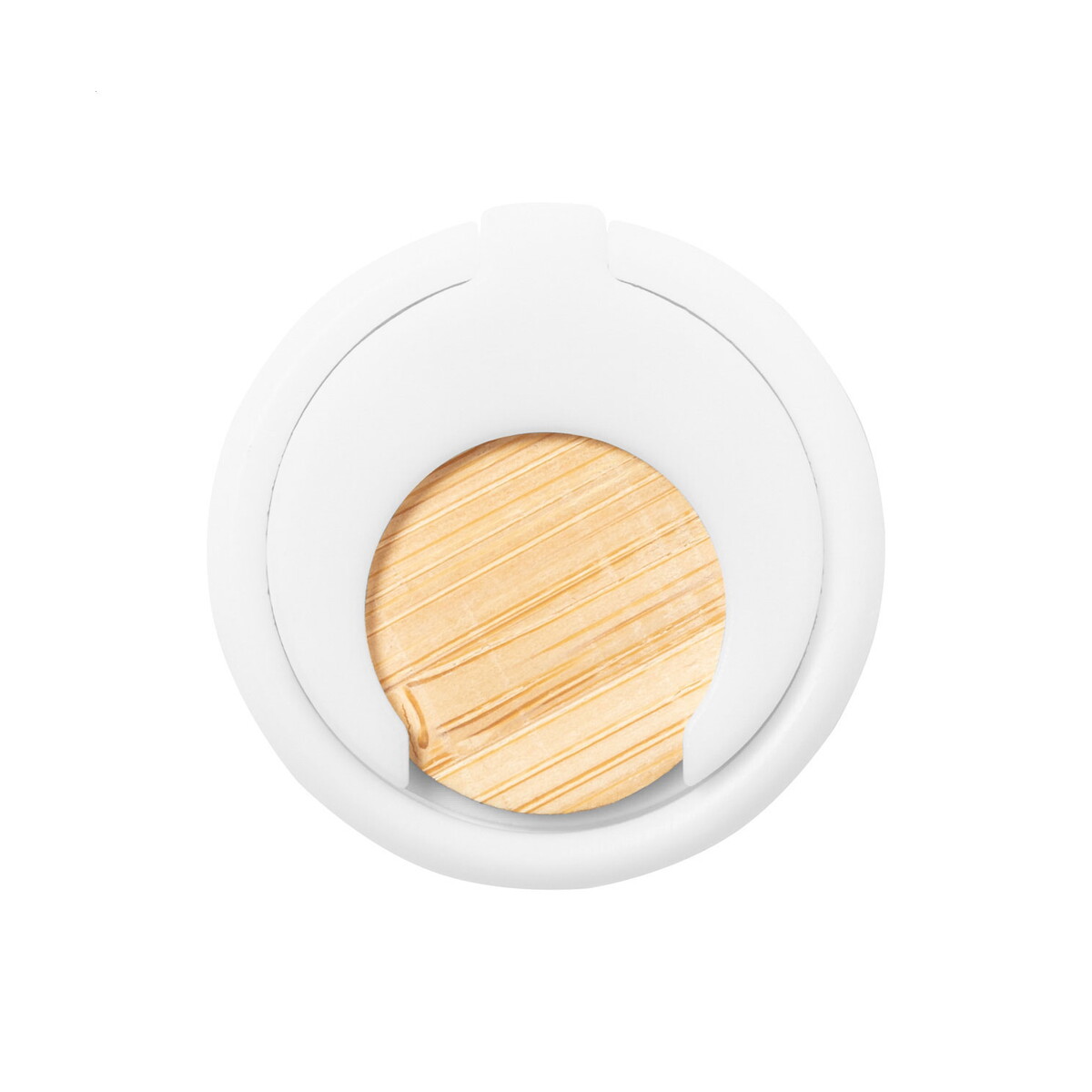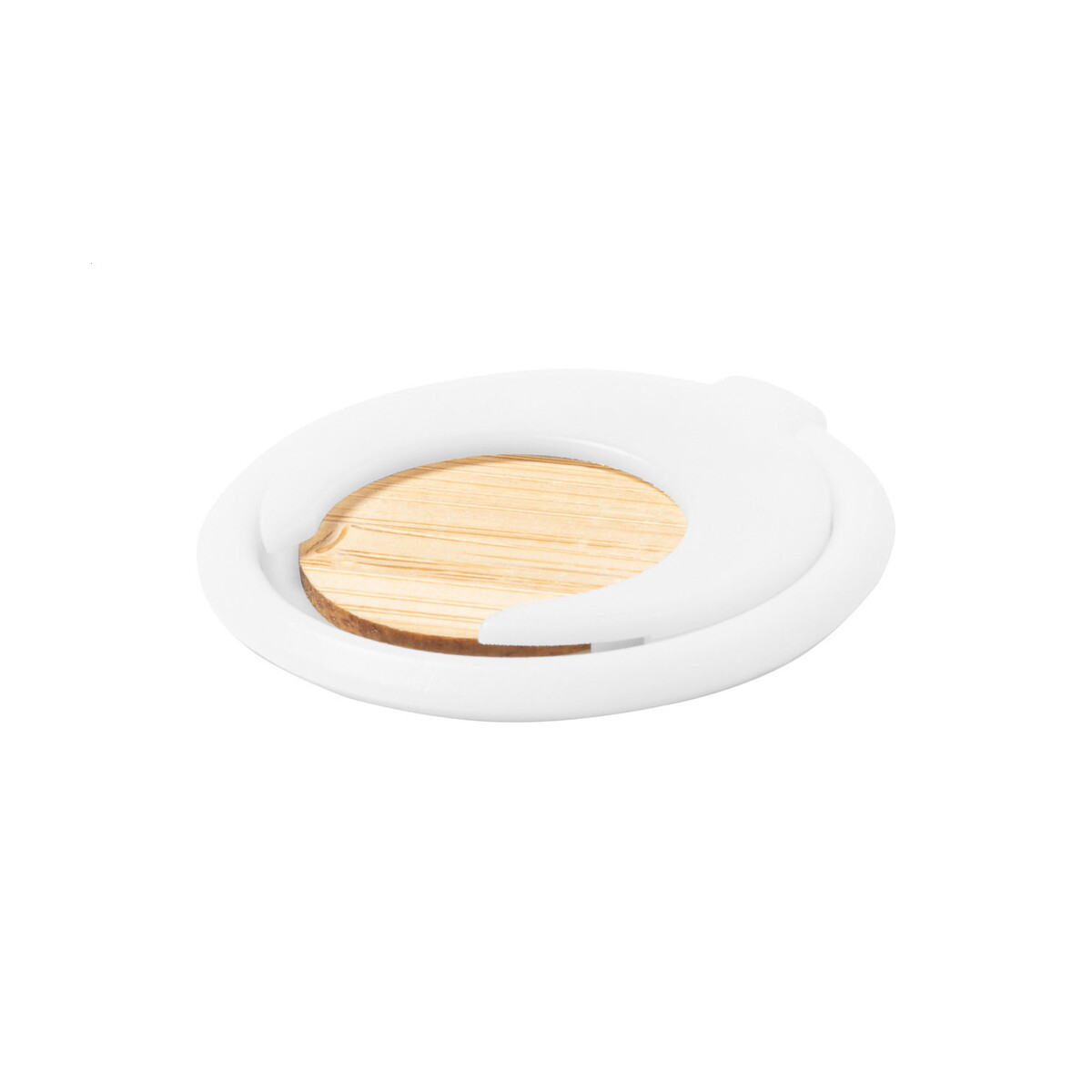 Wymiary: ø43×5 mm | Waga: 5 g | Materiał: Plastik (ABS), Bambus | Kolor: biały