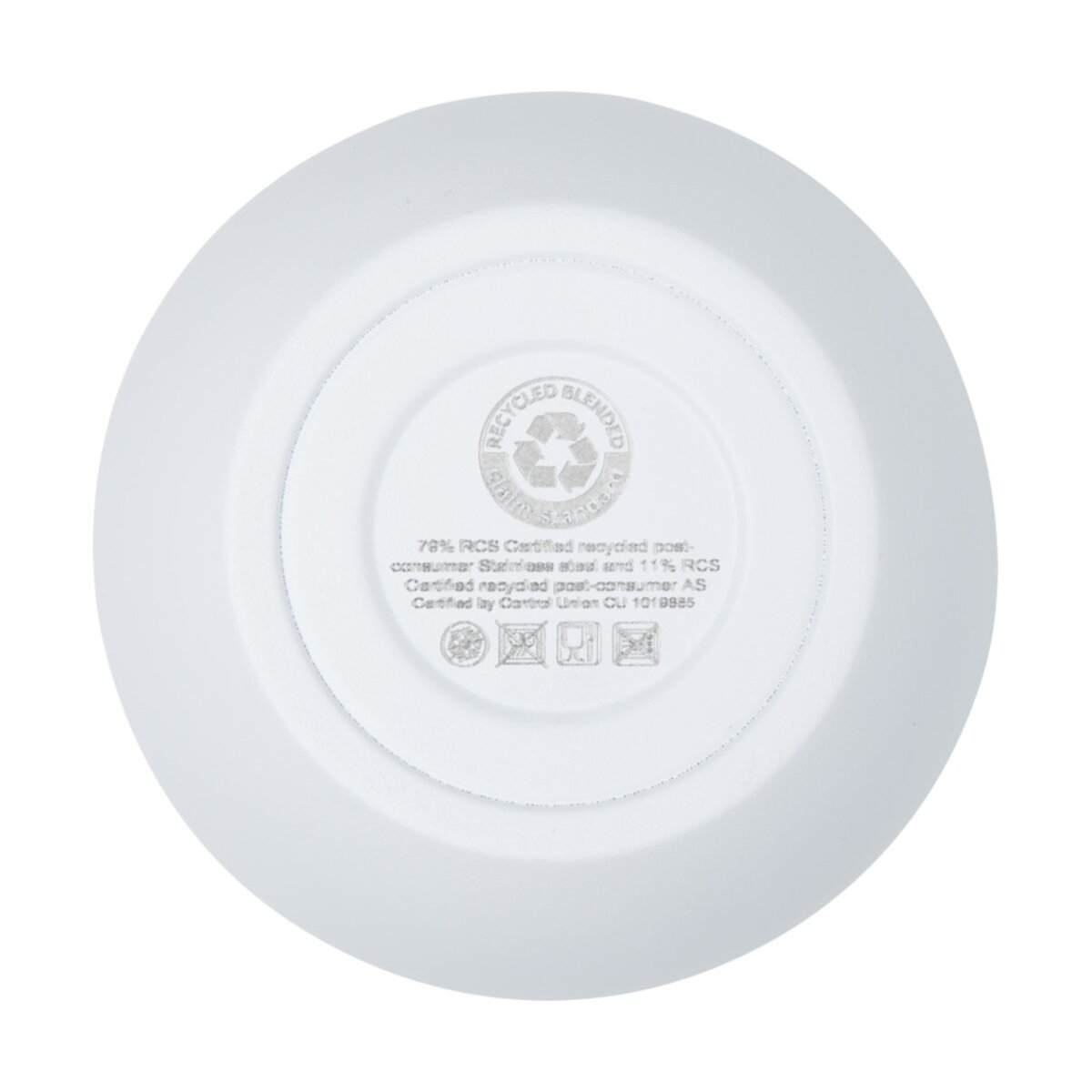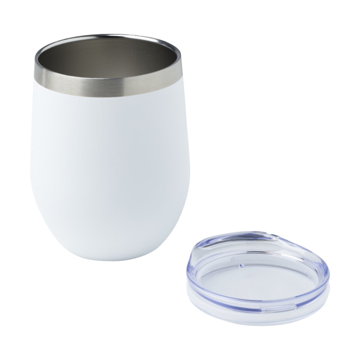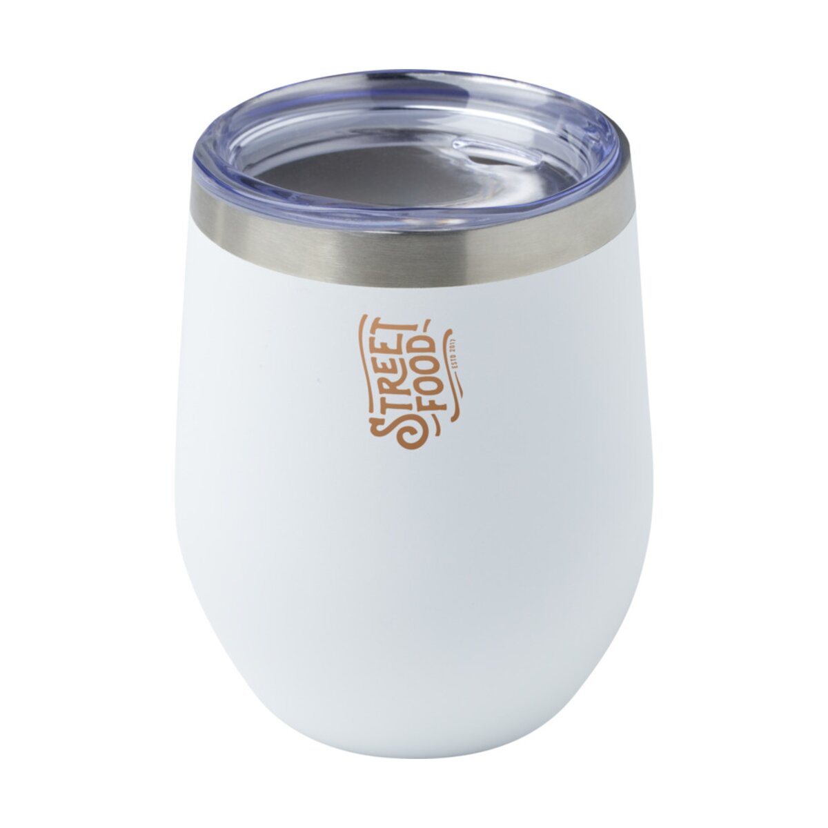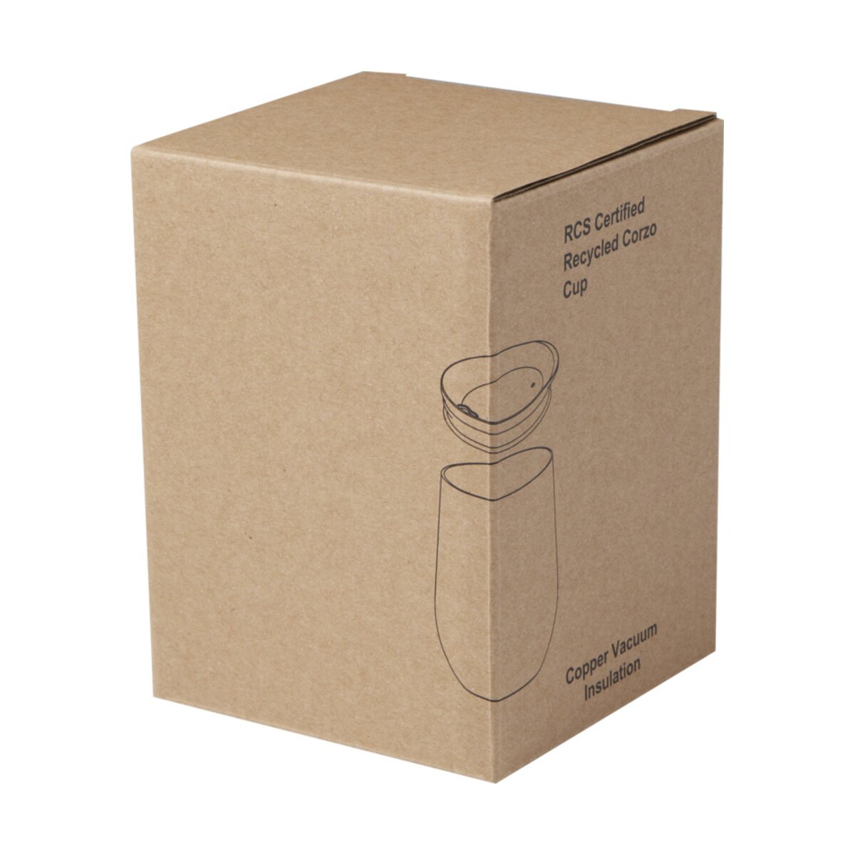 Corzo ze stali nierdzewnej z certyfikatem RCS z dwuścienną konstrukcją próżniową i miedzianą izolacją, która utrzymuje wysoką temperaturę napojów przez 6 godzin lub niską przez 24 godziny. Konstrukcja zapobiega kondensacji na zewnątrz kubka. Łatwe picie, pokrywa typu push-on. Farba proszkowa na zewnętrznej powłoce. Szeroki otwór dla wygodnego napełniania i opróżniania. Pojemność 350 ml. Zapakowana w pudełko upominkowe wykonane z kartonu z recyklingu.