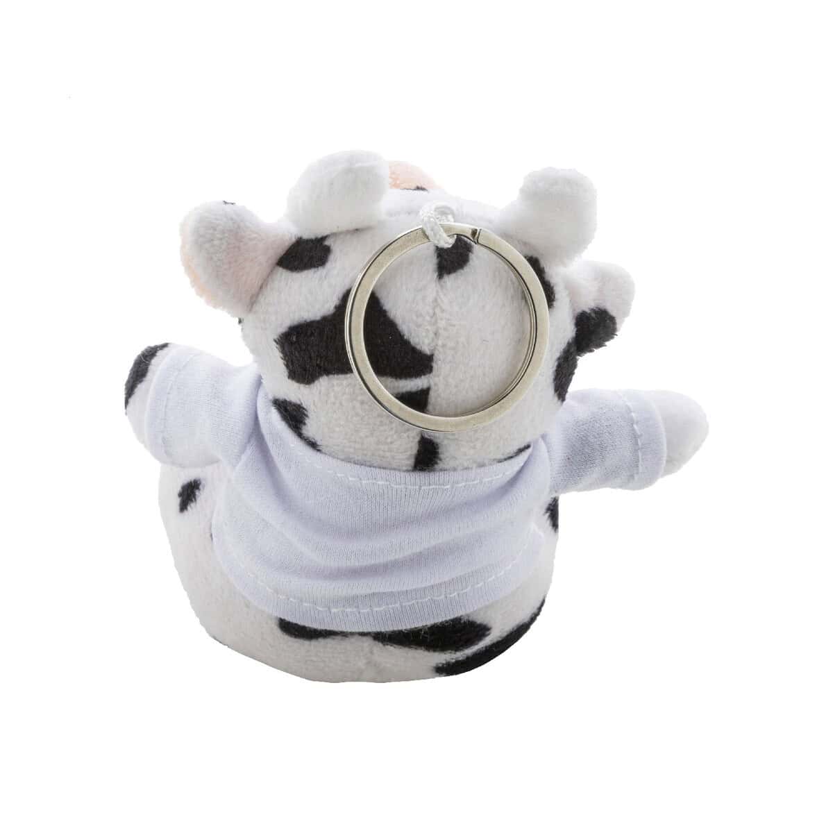 Pluszowa faktura, minimalna waga oraz kompaktowe wymiary czynią produkt niezwykle bezpiecznym i praktycznym. Użyteczność zwiększa solidne metalowe kółko, które bez trudu wytrzyma codzienne użytkowanie. W przypadku kampanii sezonowych krowa może być przebierana w tematyczne koszulki – od świątecznej czerwieni po letnie pastele – przez co staje się uniwersalnym, całorocznym nośnikiem przekazu.