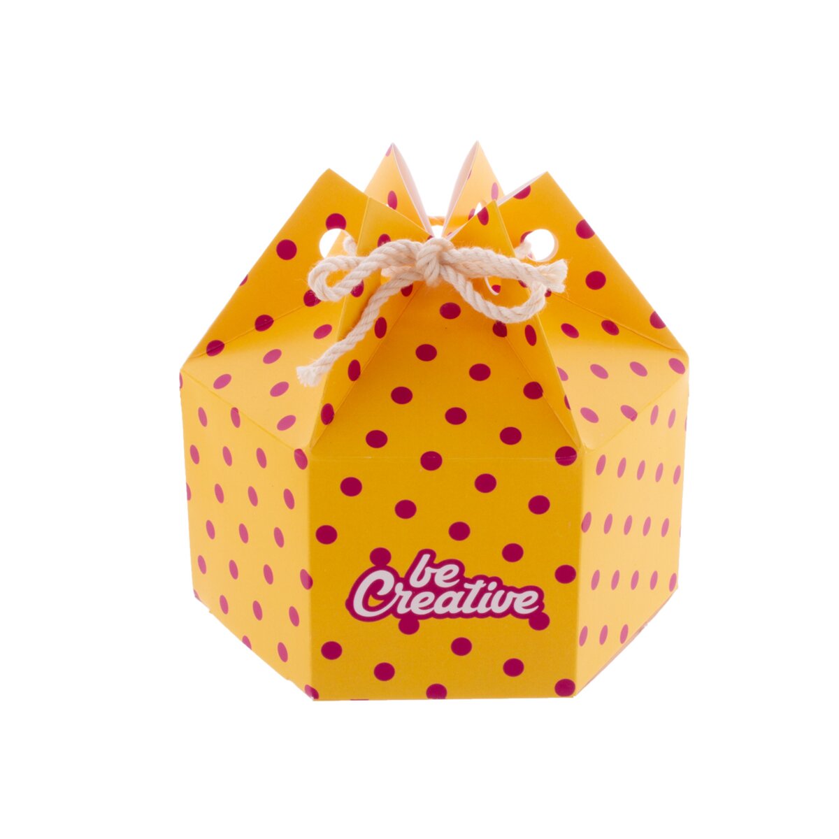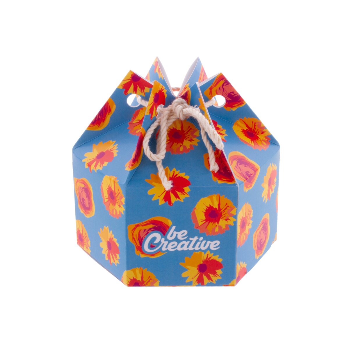 Personalizowane sześciokątne pudełka upominkowe z tektury to idealny sposób na zapakowanie prezentu. Wykonane z wysokiej jakości materiałów, są trwałe i wytrzymałe. Każde pudełko posiada full kolorowy nadruk, który może być dostosowany do indywidualnych potrzeb i preferencji. Zamknięcie na sznurek sprawia, że prezent będzie bezpiecznie zapakowany. Dostarczane są na płasko, co zapewnia wygodę w transporcie. Minimalna ilość to 50 sztuk.