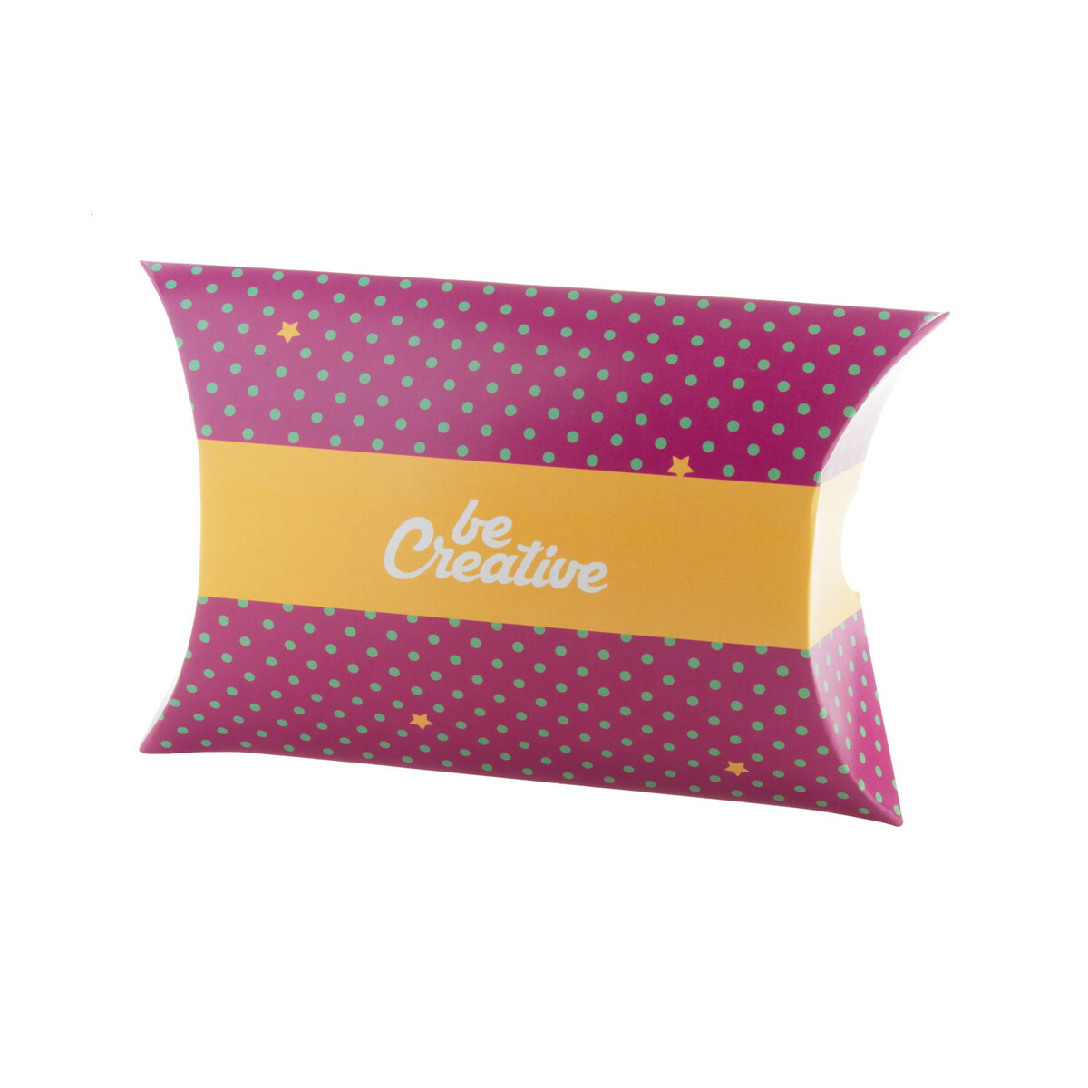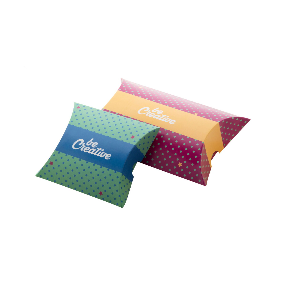 CreaBox Pillow M kartonik na poduszkę to znakomite, personalizowane opakowanie, które podkreśli unikalny charakter prezentu lub produktu i sprawi, że pierwszy kontakt klienta z Twoją marką będzie zapamiętany na długo 😊. Dzięki możliwości nadruku w pełnym kolorze cała powierzchnia staje się kreatywnym płótnem na Twoje firmowe logo, hasło lub efektowną grafikę. Całość jest wykonana z lekkiego, a jednocześnie wytrzymałego papieru, co czyni go ekologiczną alternatywą dla plastikowych opakowań.