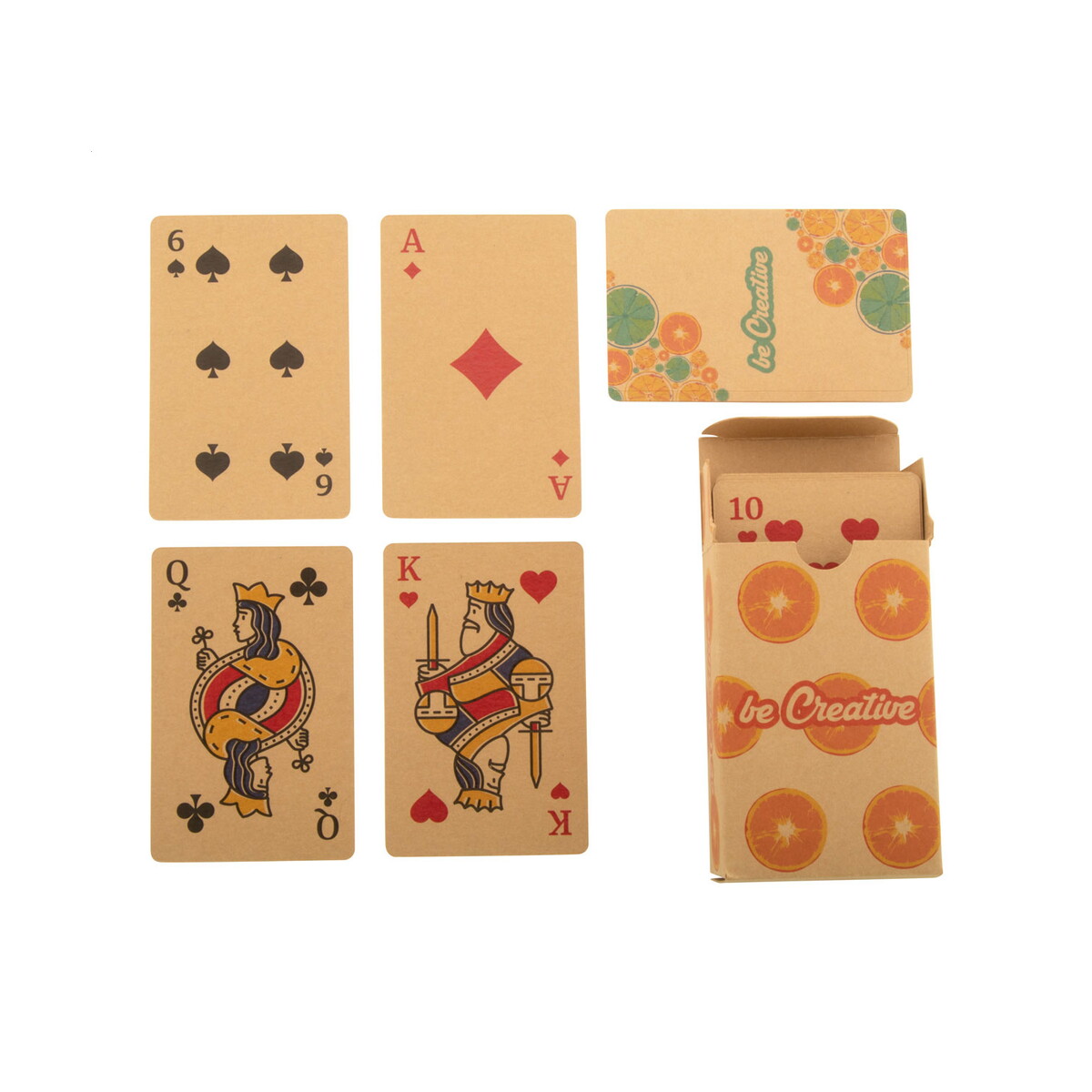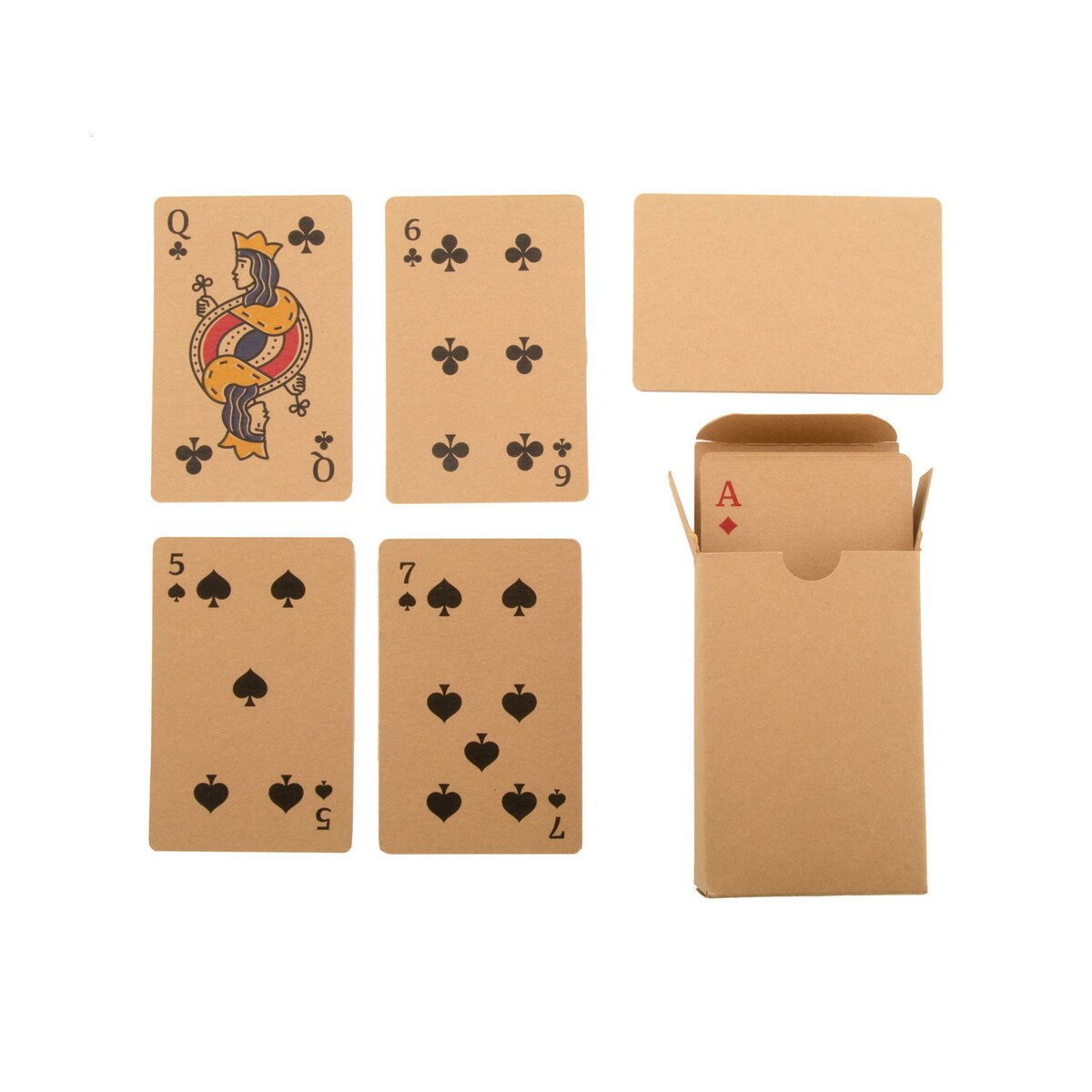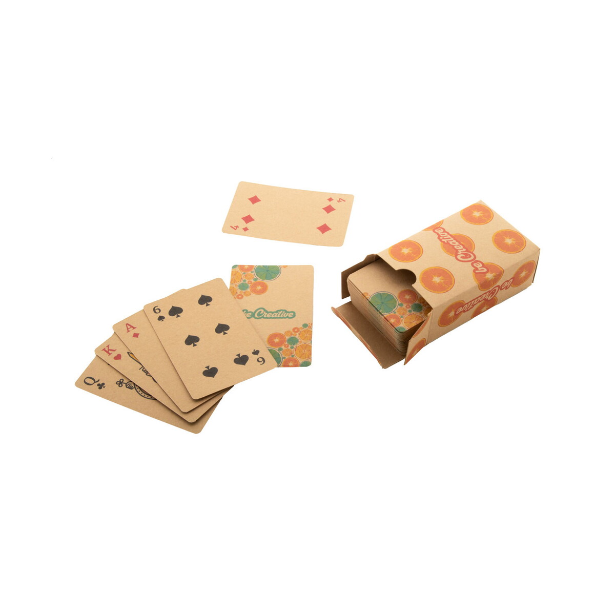 CreaCard Eco karty do gry to znakomity sposób, aby połączyć rozrywkę z ekologicznym przesłaniem i skutecznym brandingiem. Wykonane w całości z papieru kraft o naturalnym kolorze, te personalizowane talie (54 karty, wymiary 57×87×33 mm, waga 83 g) zamknięte są w solidnym pudełku z tego samego materiału. Każda karta oraz opakowanie mogą otrzymać Twój pełnokolorowy nadruk, dzięki czemu Twoje firmowe logo pozostaje zawsze na pierwszym planie 😊. Minimalne zamówienie to 100 sztuk, co czyni produkt wyjątkowo korzystnym w masowych kampaniach promocyjnych.