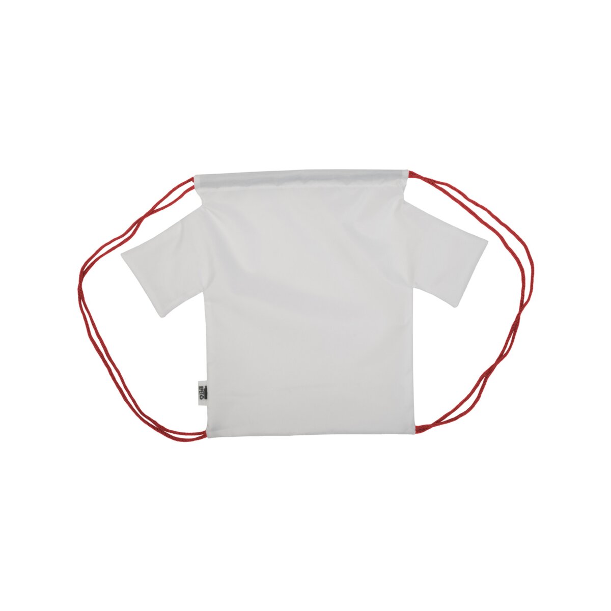 Personalizowany worek ze sznurkami w kształcie koszulki, który stanowi idealne połączenie funkcjonalności i wygody. Wykonany z trwałego i wytrzymałego poliestru 190T RPET, wzbogacony o nadrukowaną grafikę sublimacyjną i charakterystyczną metkę RPET. To idealny dodatek dla każdego dziecka, doskonale sprawdzający się w codziennych sytuacjach. Minimalna ilość zamówienia to 50 sztuk.