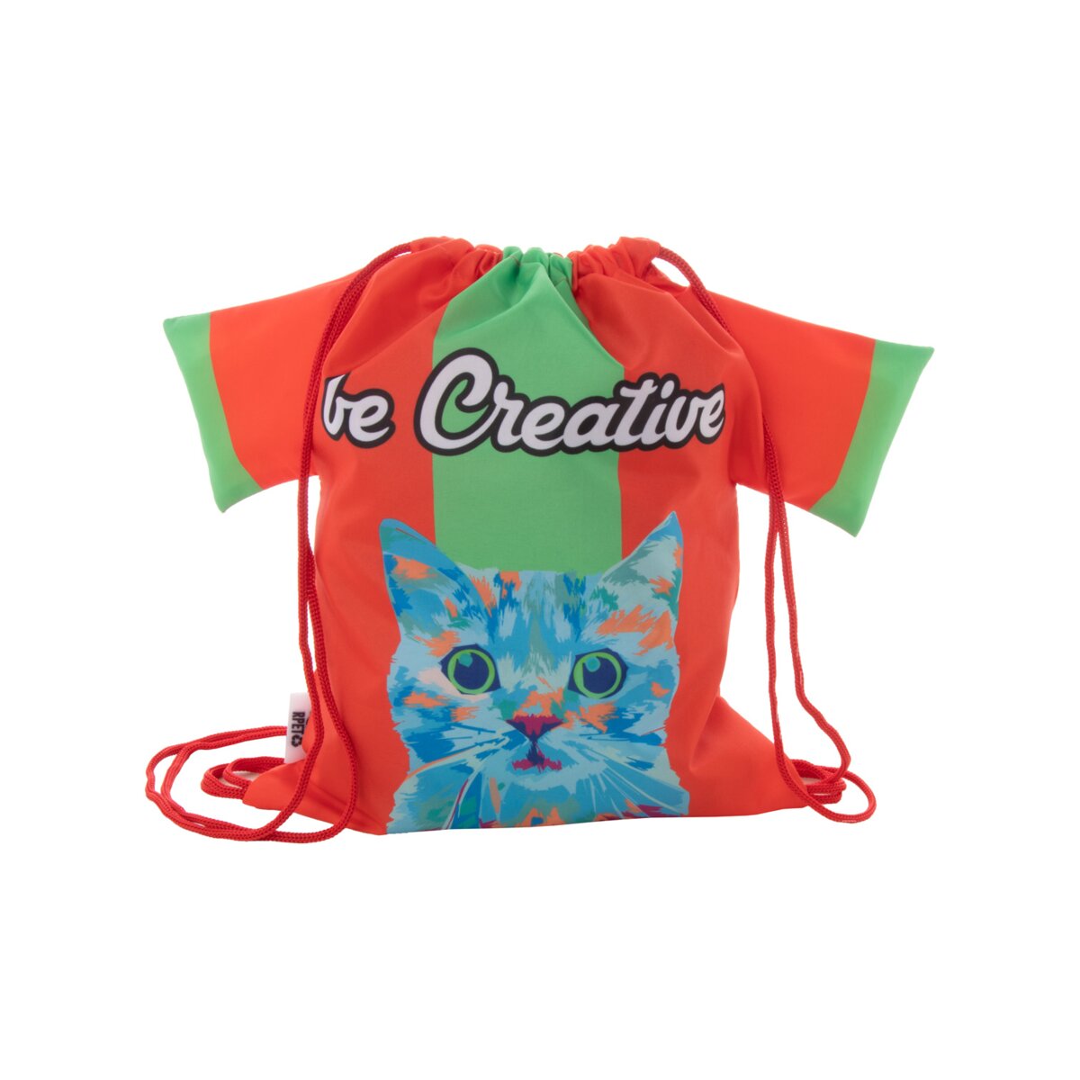 Personalizowany worek ze sznurkami pozwoli Twojemu dziecku poczuć się wyjątkowo. Jego trwałość i wytrzymałość sprawiają, że będzie służył przez długi czas. Nadrukowana grafika sublimacyjna i charakterystyczna metka RPET podkreślą styl i sprawią, że każdy worek stanie się wyjątkowy. Worek ze sznurkami w kształcie koszulki będzie idealnym akcesorium do codziennych sytuacji. Sprawdzi się jako pomysł na prezent, a także jako dodatek do codziennej garderoby Twojego dziecka. Minimalna ilość zamówienia to 50 sztuk.