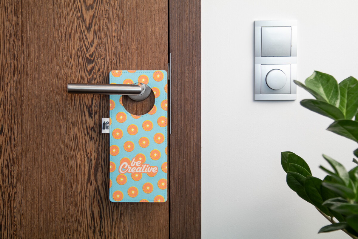 Ten praktyczny gadżet sprawdzi się w branży hotelarskiej, turystycznej, nieruchomości, wellness czy coworkingu. Może pełnić funkcję zawieszki „Nie przeszkadzać”, informować o dezynfekcji pokoju, a także promować specjalne oferty czy programy lojalnościowe. CreaFelt Door personalizowana zawieszka na drzwi znajdzie zastosowanie w biurach jako elegancki nośnik komunikatów wewnętrznych, a w domu posłuży jako stylowa ozdoba drzwi dziecięcego pokoju lub pracowni.