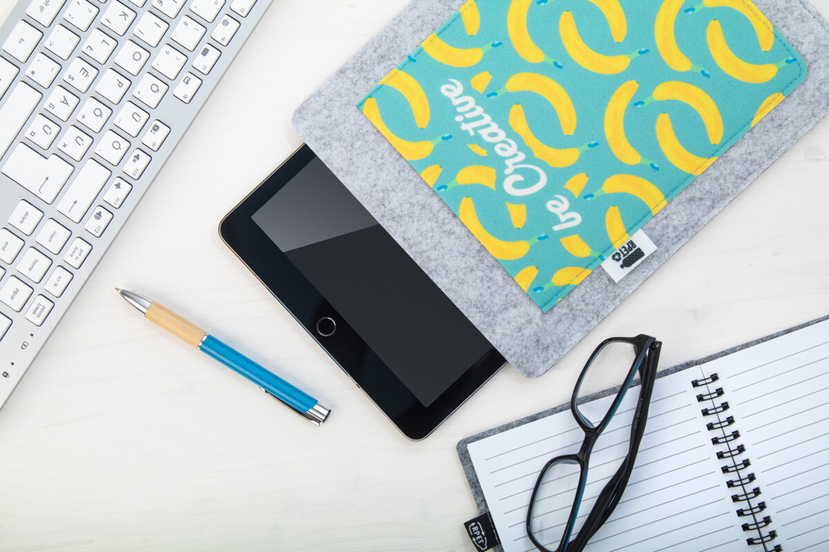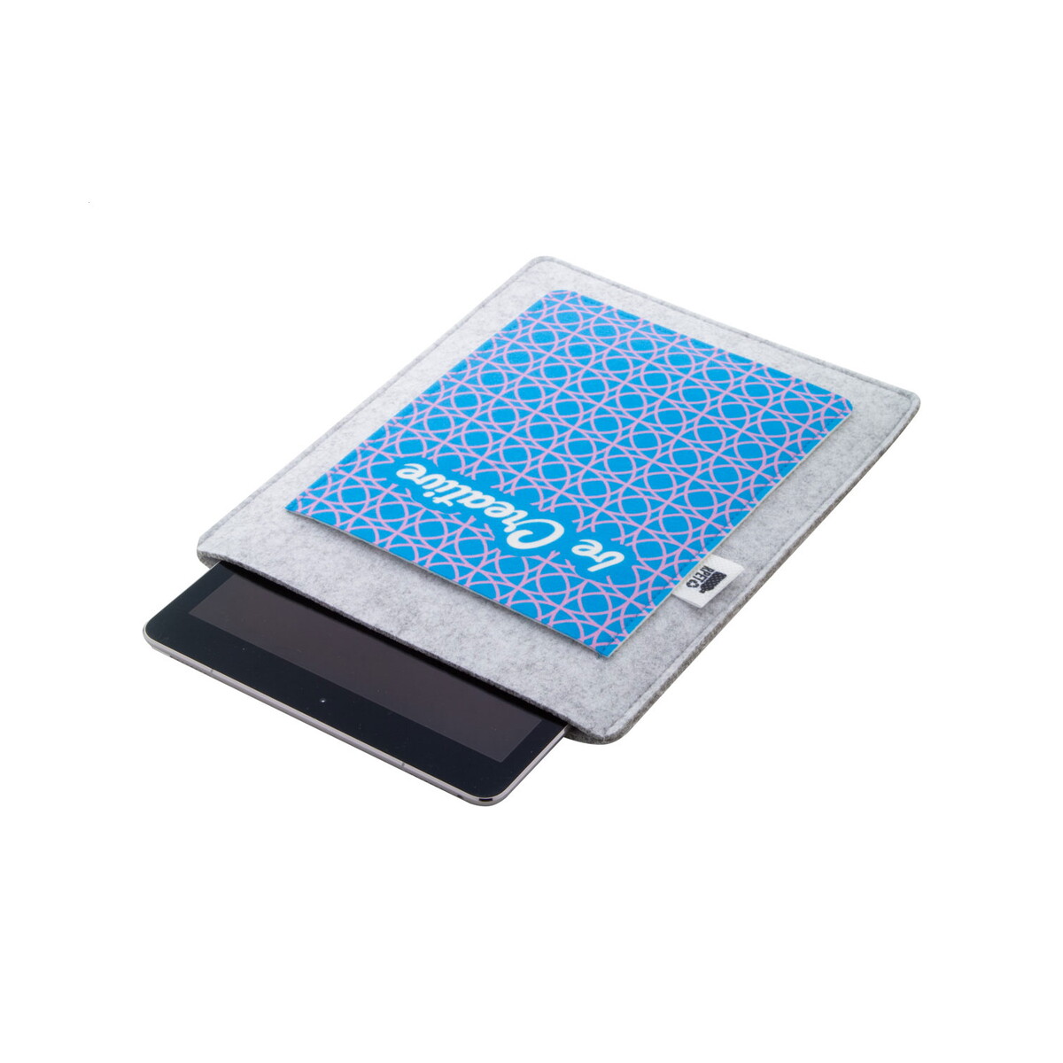 CreaFelt Tablet personalizowany uchwyt na tablet to nowoczesny, a zarazem stylowy sposób na bezpieczne przechowywanie i wygodne użytkowanie mobilnego centrum rozrywki czy pracy. Wykonany z ekologicznego filcu RPET, produkt przyciąga wzrok subtelną metką RPET i zapewnia świadomość, że wybierasz rozwiązanie przyjazne środowisku. Gadżet wyróżnia się przemyślaną konstrukcją: miękka, ale wytrzymała kieszeń chroni urządzenie przed zarysowaniami, a przednia sekcja z full kolorowym nadrukiem pozwala wyeksponować firmowe logo w efektowny i trwały sposób. Dzięki temu reklamowy charakter etui buduje rozpoznawalność marki, gdziekolwiek się pojawi 🙂