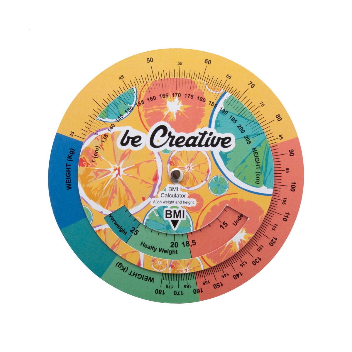 Miarka BMI będzie znakomitym wsparciem nie tylko dla trenerów personalnych, dietetyków i lekarzy, ale także dla coachów zdrowia, szkół rodzenia czy ośrodków rehabilitacyjnych. Użytkownik, ustawiając odpowiednio wskaźniki na dysku, natychmiast odczyta orientacyjny stan swojego BMI, a przy okazji zapamięta Twoje logo i przekaz reklamowy. Taka forma komunikacji buduje pozytywne skojarzenia i wzmacnia lojalność klientów dla Twojej firmy.