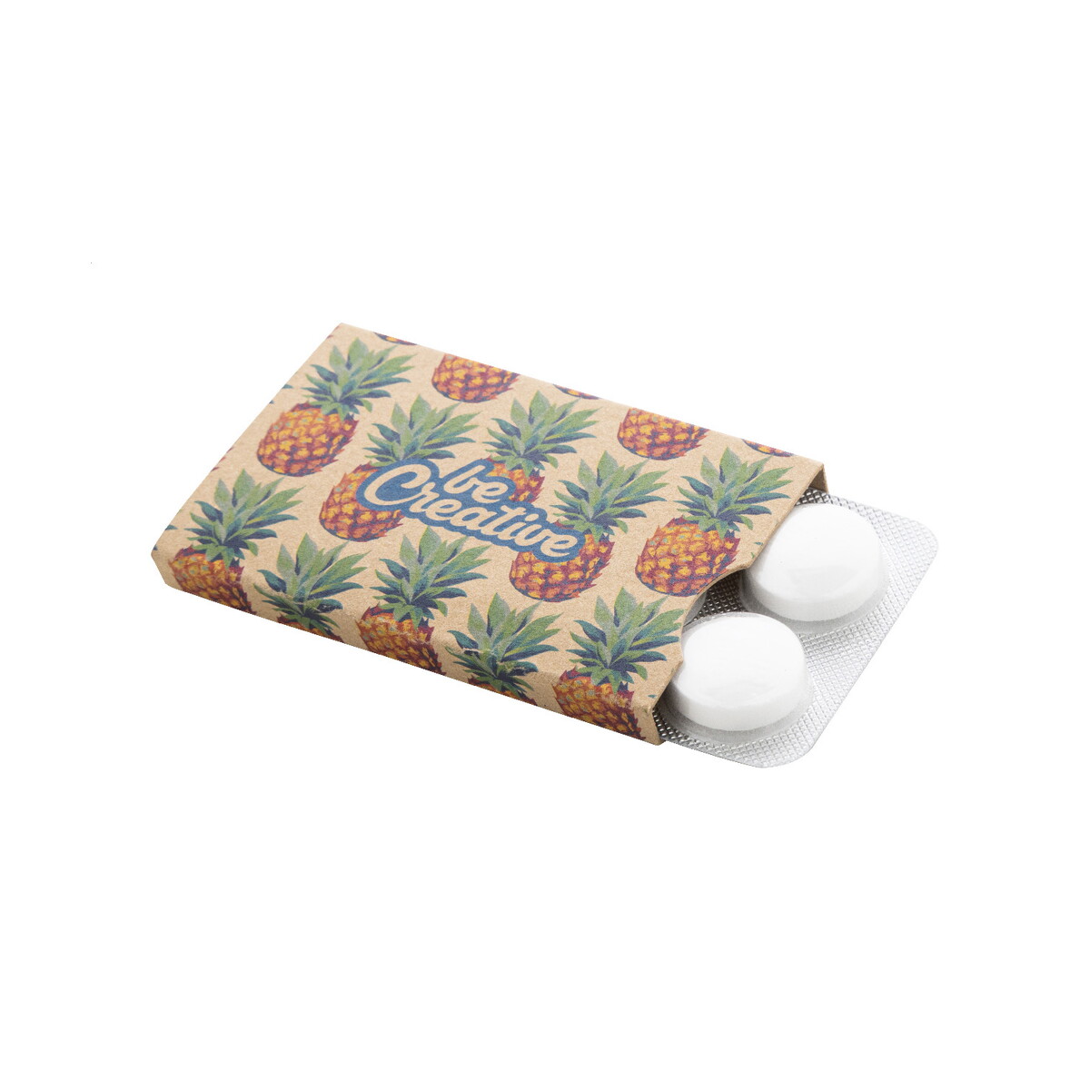 CreaMint 5 Eco personalizowane miętówki to niewielki, lecz niezwykle skuteczny sposób, aby świeżo zapisać się w pamięci klientów 😊. W blistrze o przyjaznych dla środowiska wymiarach 43×66×7 mm kryje się pięć dużych, aromatycznych cukierków, których pełen mentolowej mocy smak doskonale orzeźwia po spotkaniu biznesowym, lunchu czy długiej konferencji. Do kompletu otrzymujesz kopertę z papieru kraft, na której zamieścimy Twój indywidualny nadruk w technologii full-color – od minimalistycznego znaku firmowego, przez grafikę sezonową, aż po kod QR kierujący do landing page. Tak powstaje praktyczny gadżet, który każdego dnia pracuje dla Twojej firmy.