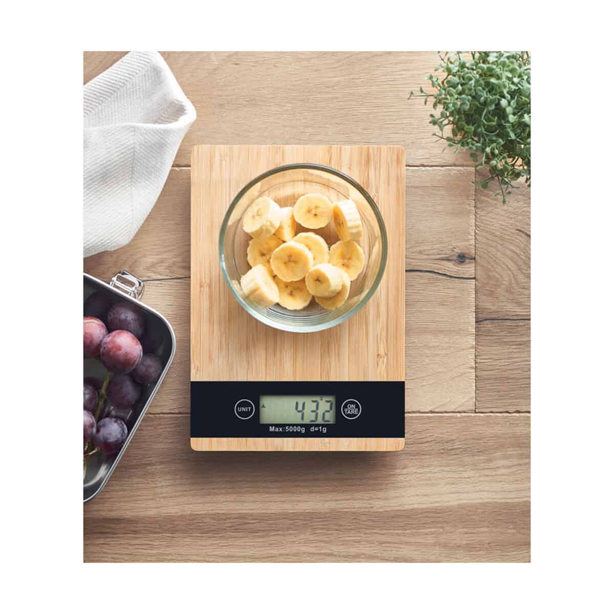 Naturalny bamboo w kolorze drewnianym jest unikalny – każda sztuka może różnić się odcieniem, dzięki czemu obdarowany otrzymuje niepowtarzalny egzemplarz. Waga potrzebuje jedynie dwóch baterii AAA (brak w zestawie), co zwiększa mobilność podczas plenerowych pokazów czy imprez firmowych. To reklamowe rozwiązanie jest więc perfekcyjnym wyborem dla dietetyków, trenerów personalnych, producentów zdrowej żywności, a także szkół gotowania.
