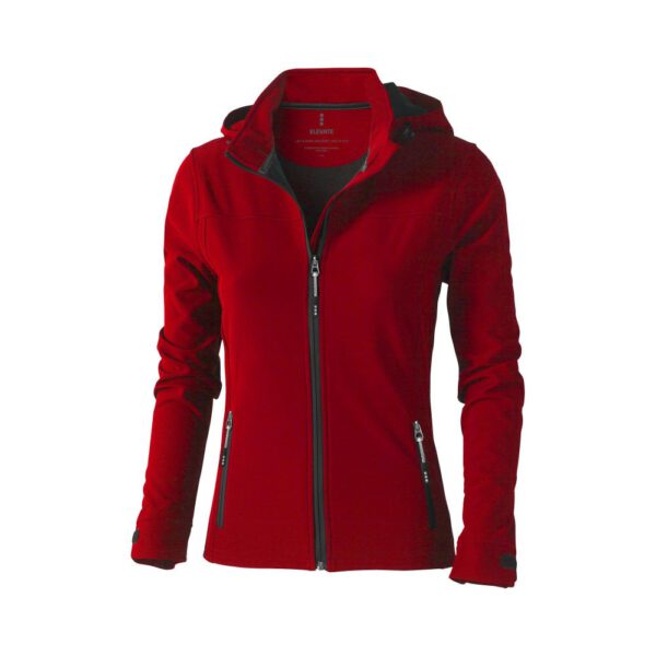 Kurtka z trzema warstwami sklejonymi z materiału 4-way stretch, TPU i mikropolaru zapewnia wodoodporność na poziomie 5000mm i oddychalność 3000g/m2/24h MVP. Wyposażona jest w odpinany kaptur, regulowane mankiety zapinane na rzep, szwy kształtujące sylwetkę oraz elastyczny ściągacz w kapturze i w pasie ze stoperami. Do jej wyposażenia należą również kontrastowy odwrócony zamek błyskawiczny, kieszenie na ręce na zamek, antypoślizgowe końcówki suwaków (z zapasowym antracytowym zestawem) oraz metka wdrukowana transferem dla lepszego komfortu.