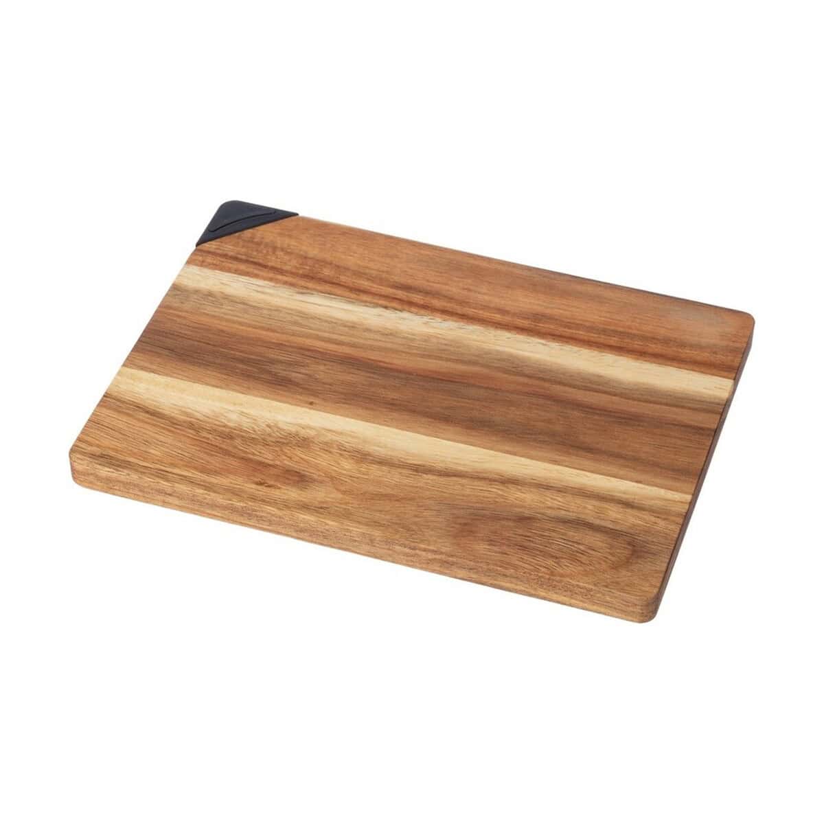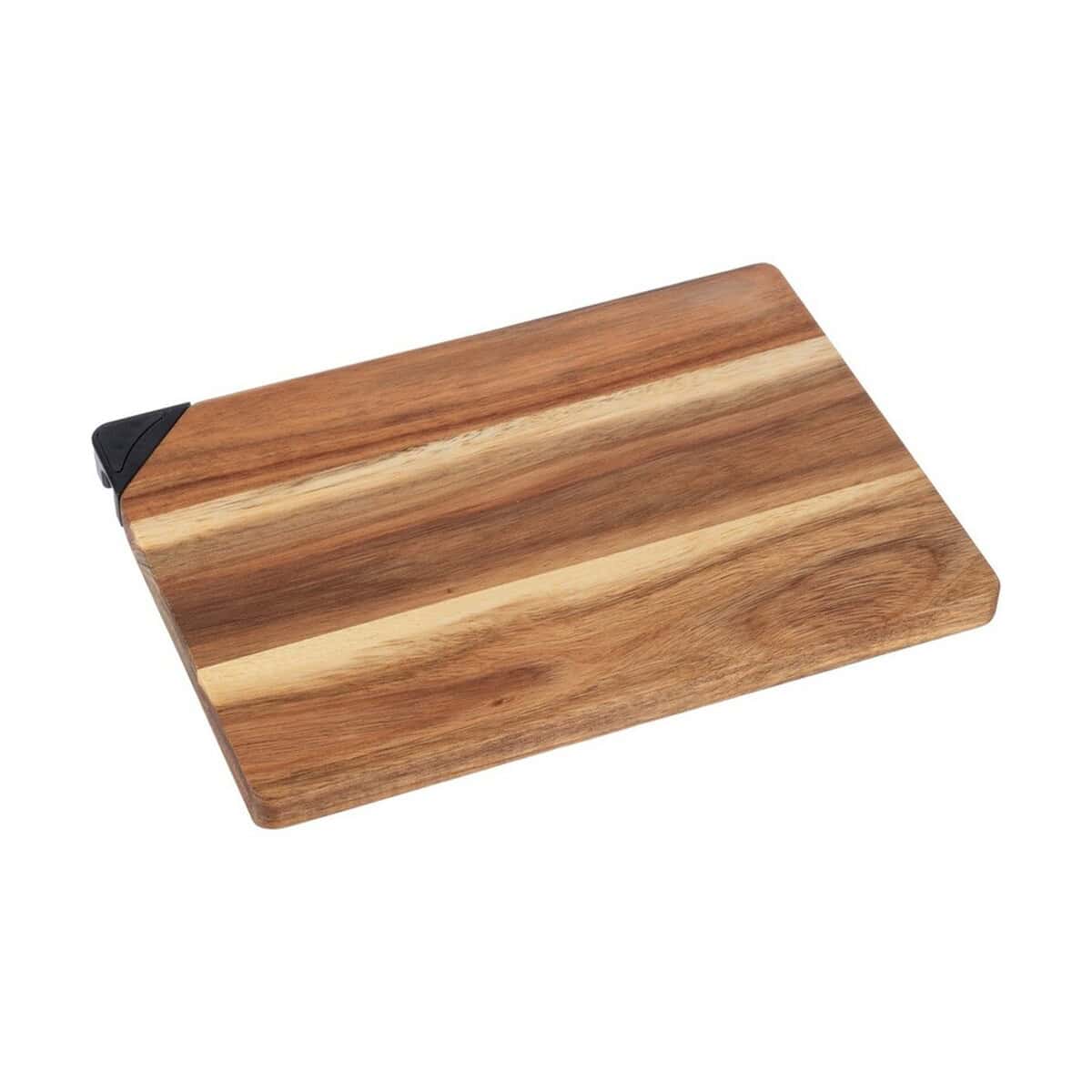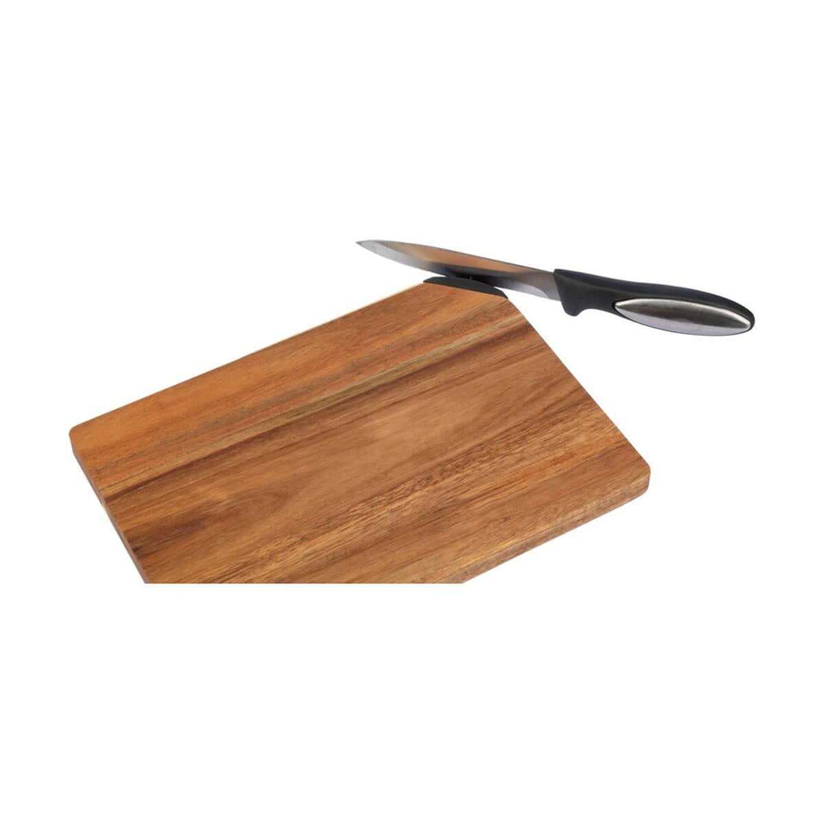 Deska do krojenia z wbudowaną ostrzałką w rogu to znakomity towarzysz codziennego gotowania. Wykonana z naturalnego, odpornego na zużycie drewna akacjowego, łączy w sobie elegancję i funkcjonalność. Kompaktowe wymiary 24,5 × 17,5 × 1,5 cm i wygodna waga 383 g sprawiają, że z łatwością przeniesiesz ją z blatu do zlewu, a jednocześnie pomieścisz na niej wszystkie niezbędne produkty. Zintegrowana ostrzałka z ABS i stali nierdzewnej pozwala w kilka sekund przywrócić nożom pełną ostrość – to mały detal, który usprawni pracę w każdej kuchni 😊.