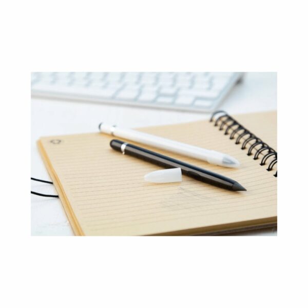 Ten wytrzymały długopis bezatramentowy to idealne połączenie wytrzymałości i komfortu. Wykonany z lekkiego, trwałego aluminium, długopis ma czarną gumkę do ekranu dotykowego, dzięki której można łatwo pisać na urządzeniach elektronicznych. Końcówka wykonana jest z wytrzymałego stopu metalu, który utlenia papier, dzięki czemu długopis pisze podobnie jak ołówek, a jednocześnie jest usuwalny. Długowieczny, aluminiowy długopis bezatramentowy zapewnia długotrwałą trwałość i wygodę, dlatego jest idealny do codziennego użytku.