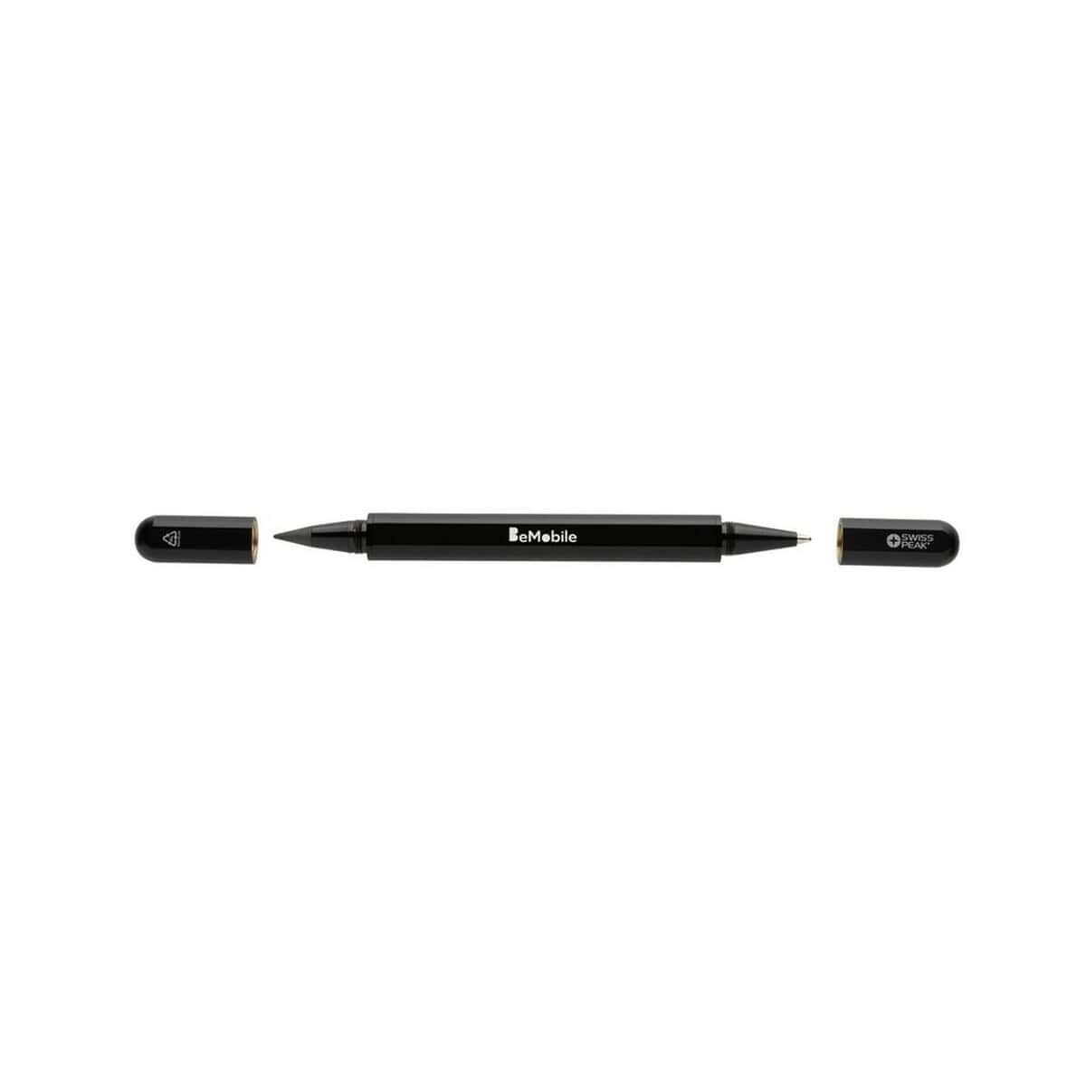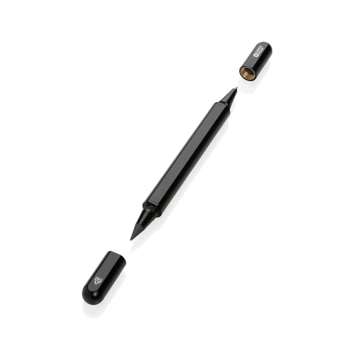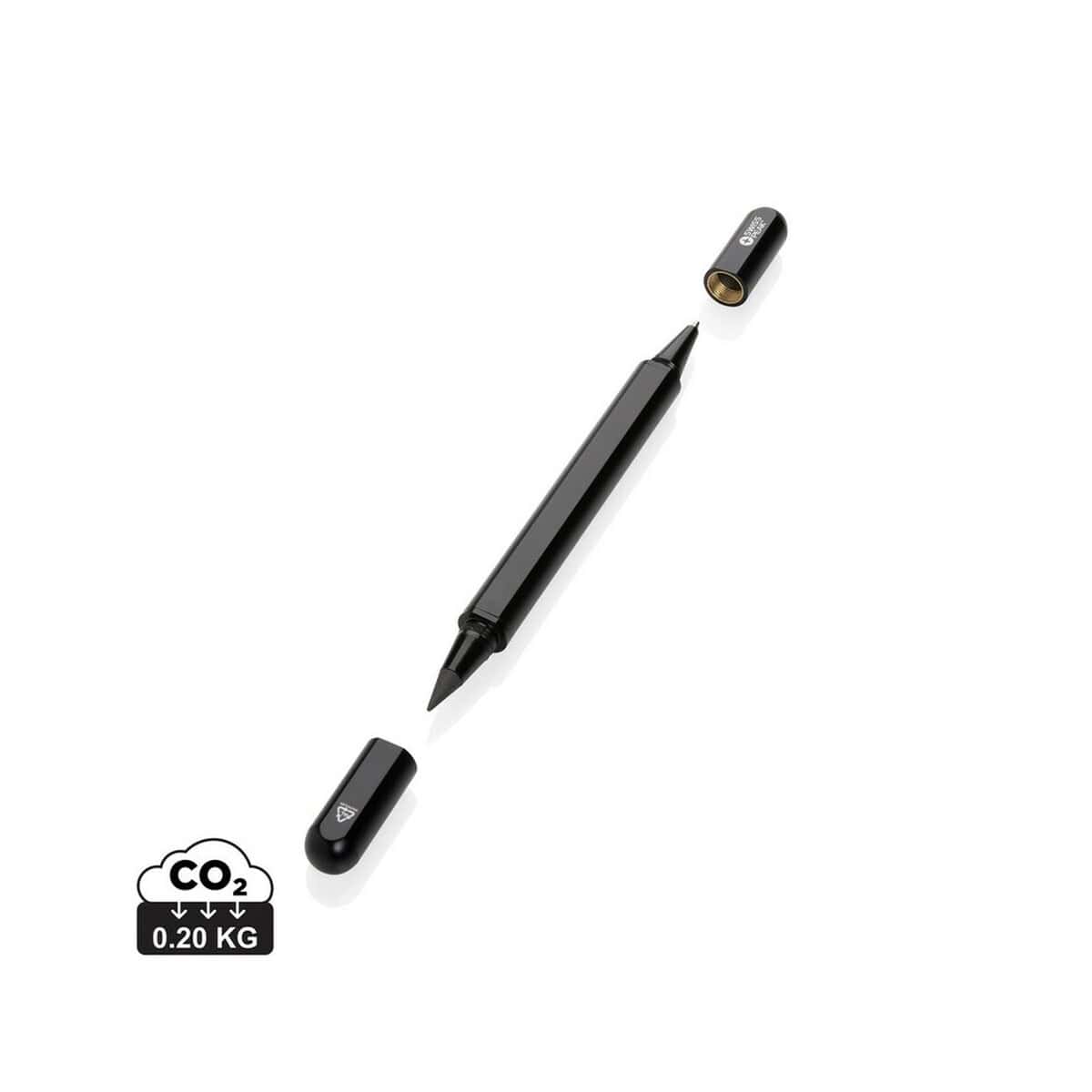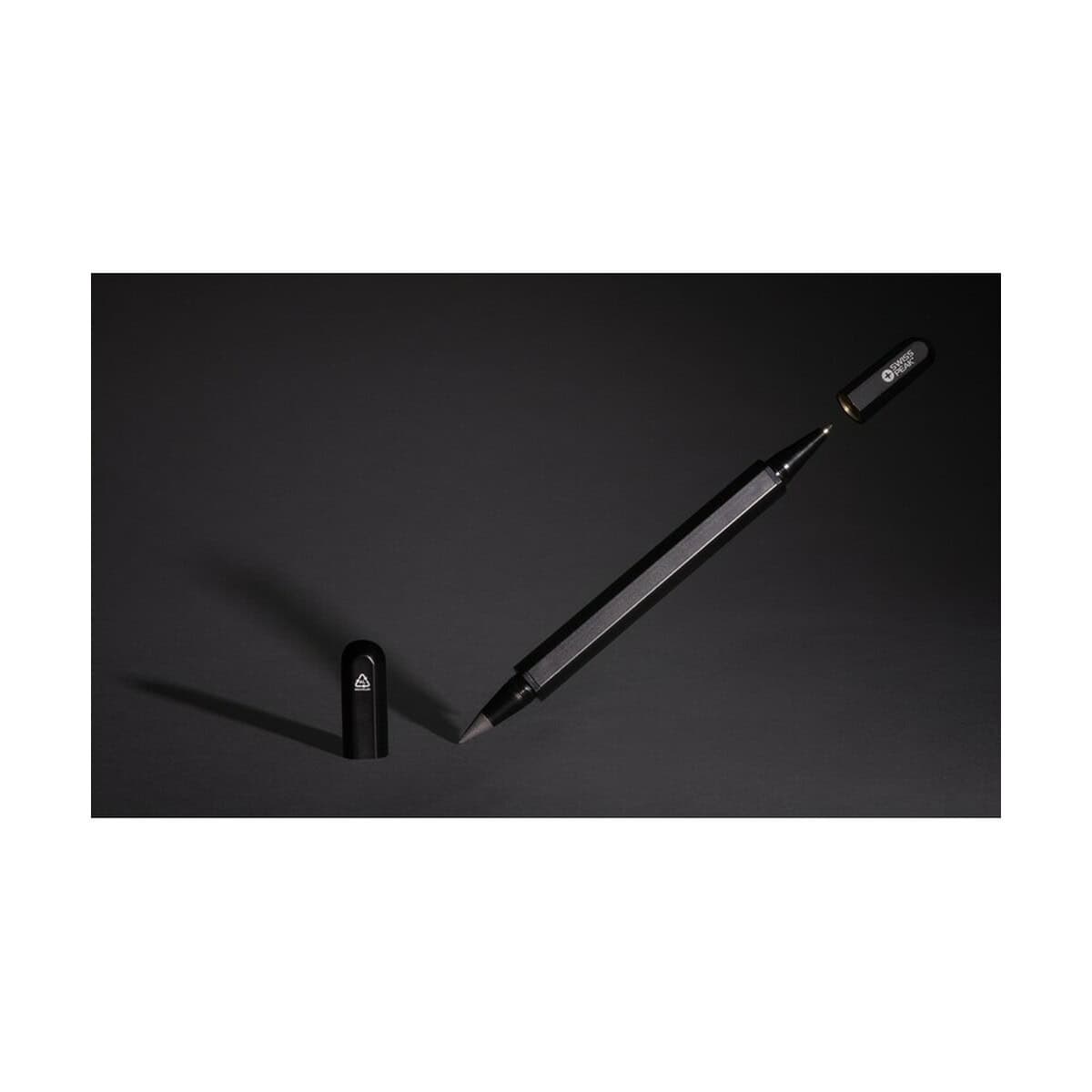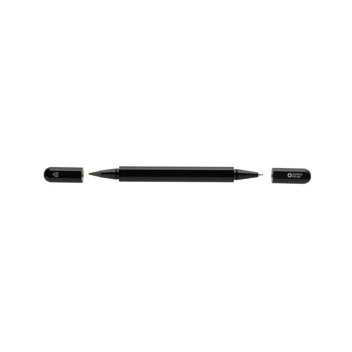 Długopis 2 w 1 Swiss Peak Storm, aluminium z recyklingu to niezwykle wszechstronny gadżet, który łączy funkcję klasycznego długopisu z „wiecznym” ołówkiem wyposażonym w specjalnie wolnościerającą się grafitową końcówkę. Dzięki temu jedno eleganckie narzędzie umożliwia pisanie zarówno atramentem w kolorze niebieskim (długość linii ok. 1200 m), jak i szkicowanie bez konieczności temperowania. Solidna obudowa z certyfikowanego RCS aluminium z recyklingu (aż 83 % całkowitej masy) sprawia, że akcesorium wyróżnia się trwałością oraz dbałością o środowisko, a jego ślad węglowy to jedynie 0,2 kg CO₂. ✨
