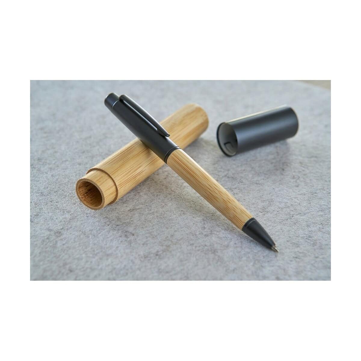 Metalowy korpus w kolorze srebrnym lub czarnym oraz bambusowy trzon tworzą harmonijną kompozycję natury i nowoczesności. Precyzyjny mechanizm przekręcany, niebieski wkład o płynnym przepływie tuszu i perfekcyjnie wyważony środek ciężkości czynią ten produkt znakomitym partnerem podczas codziennego podpisywania dokumentów, notatek z konferencji czy sporządzania kreatywnych szkiców. To świetny wybór, gdy potrzebujesz eleganckiego upominku w kategoriach: Długopisy metalowe z logo oraz Długopisy bambusowe z logo.